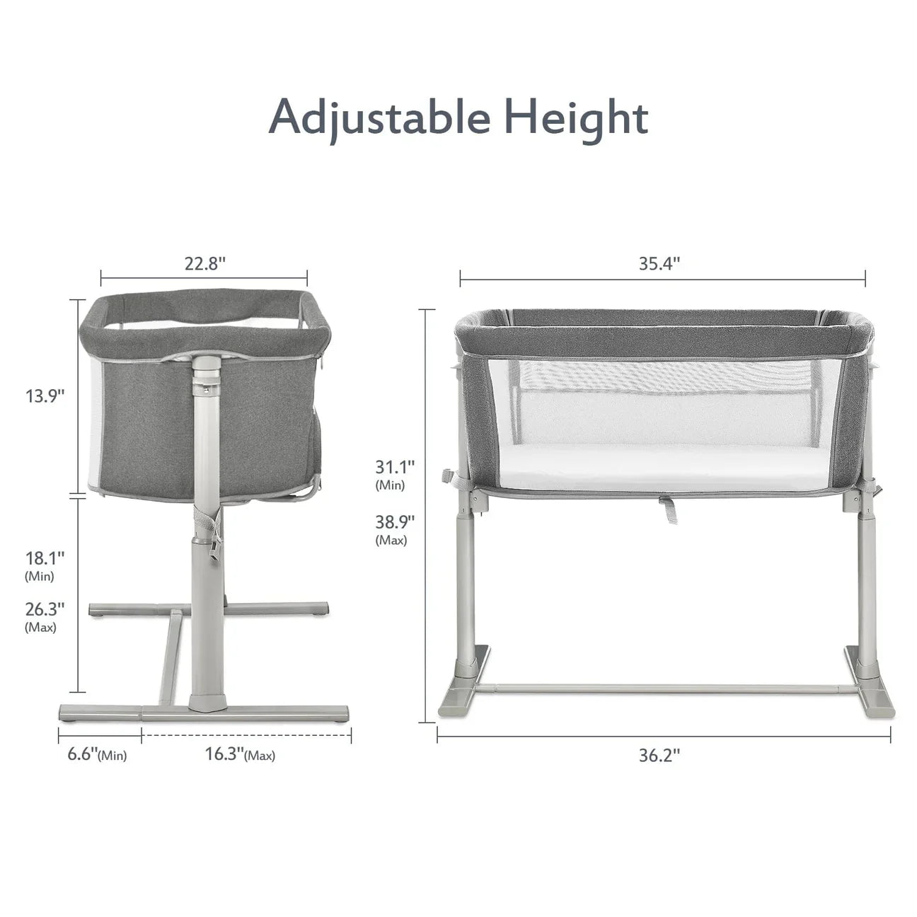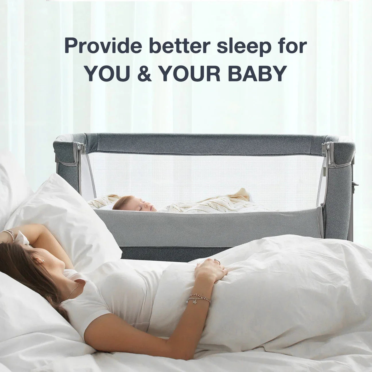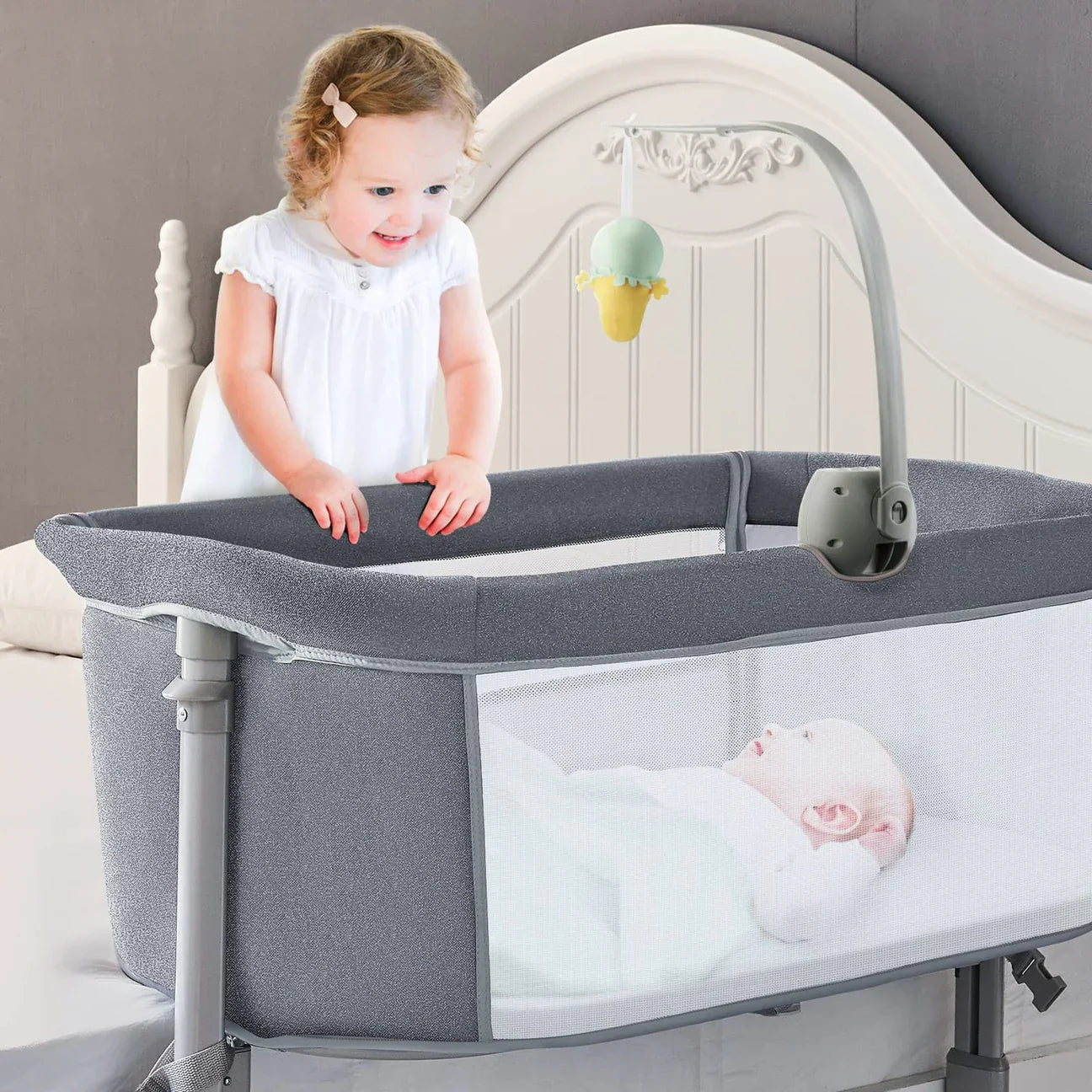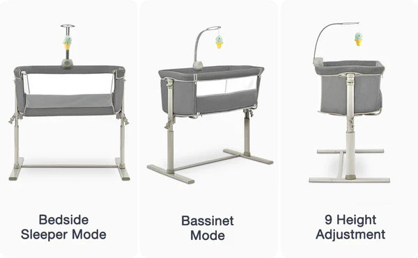 يمكن استخدام وضعين كسرير مستقل وكسرير نوم بجانب السرير، متصل بسرير الكبار. تسمح الشبكة ذات الوجهين للآباء بمراقبة حالة الطفل بوضوح في المهد في أي وقت، مما يضمن الحمل الحراري للهواء. مزود بعجلات عالمية تسمح لك بنقل السرير من غرفة النوم إلى غرفة المعيشة أو المطبخ أو أي مكان في المنزل بشكل مريح. تركيب سريع وسهل، لا حاجة لأي أدوات أثناء التجميع، يمكن إكماله في 3 دقائق. تم تصميم سرير الأطفال بجانب السرير من إطار ألومنيوم عالي القوة وهيكل صلب وقاعدة ثابتة مدعومة لضمان عدم إمالة السرير إلى جانب واحد.