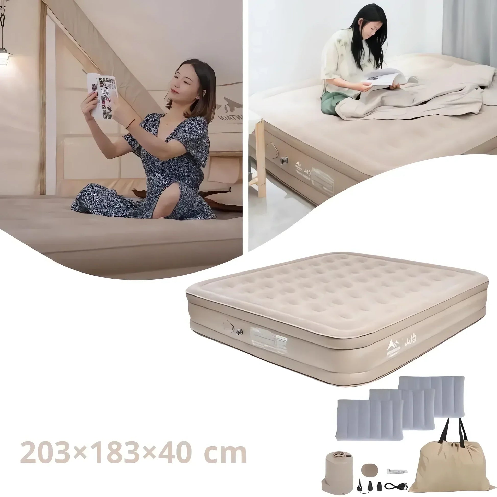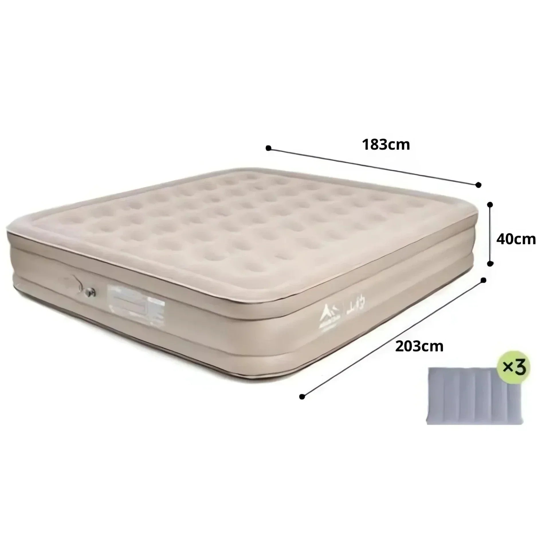 السرير الهوائي المحمول القابل للنفخ الذاتي مع مضخة هواء وثلاث وسادات من ماونتن (203×183×40) سم
