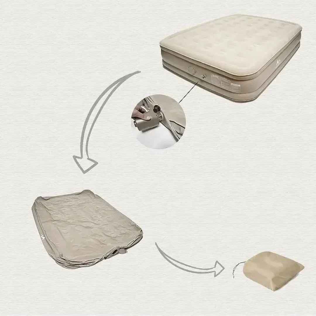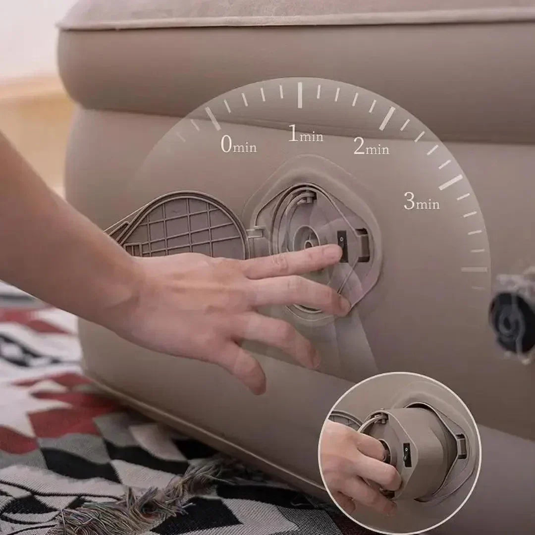 يتميز السرير بمضخة هوائية مدمجة تعمل بزر واحد (ماعليك سوى تركيبها وضغط الزر)، مما يجعل عملية النفخ والسحب سهلة وسريعة. لن تحتاج إلى البحث عن مضخة هوائية منفصلة أو إنفاق الوقت والجهد في الفخ على دفعات على دفعات.