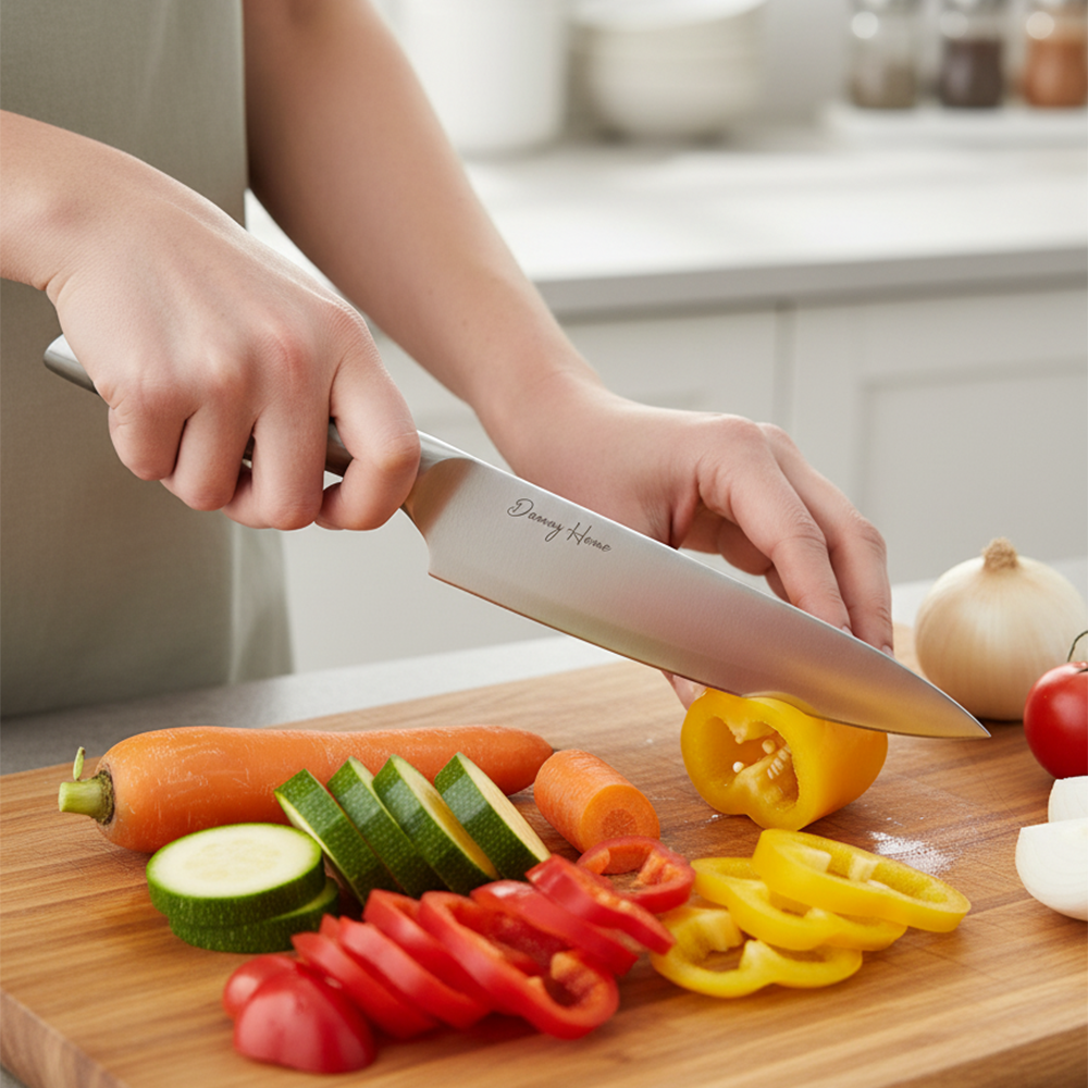 اجعل تجربة الطهي أكثر سهولة ودقة مع سكين المطبخ الاحترافية من Danny Home المصنوعة بالكامل من الفولاذ المقاوم للصدأ.