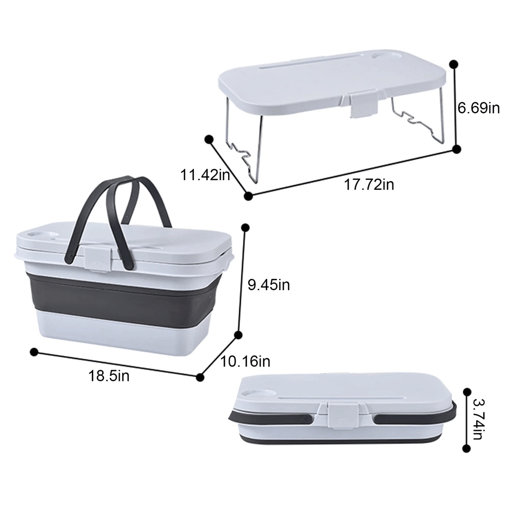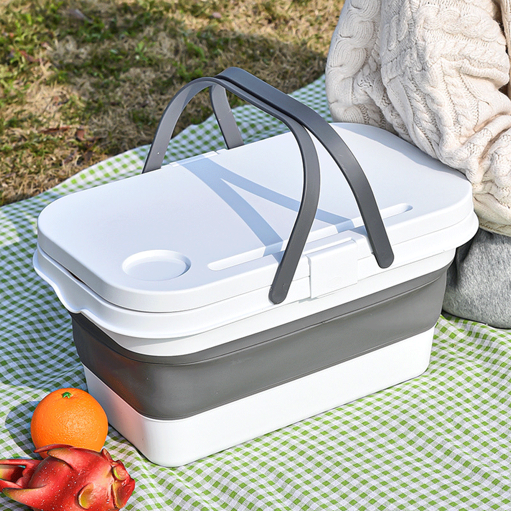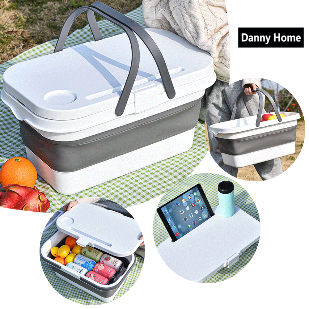 يمكن استخدام السلة كصندوق تخزين، أو حوض، أو وعاء ثلج، أو دلو. يحتوي الغطاء على حامل أكواب، وحامل هاتف محمول، ويمكن استخدامها كطاولة. سهلة الحمل، محكمة الغلق، ومقاومة للماء.