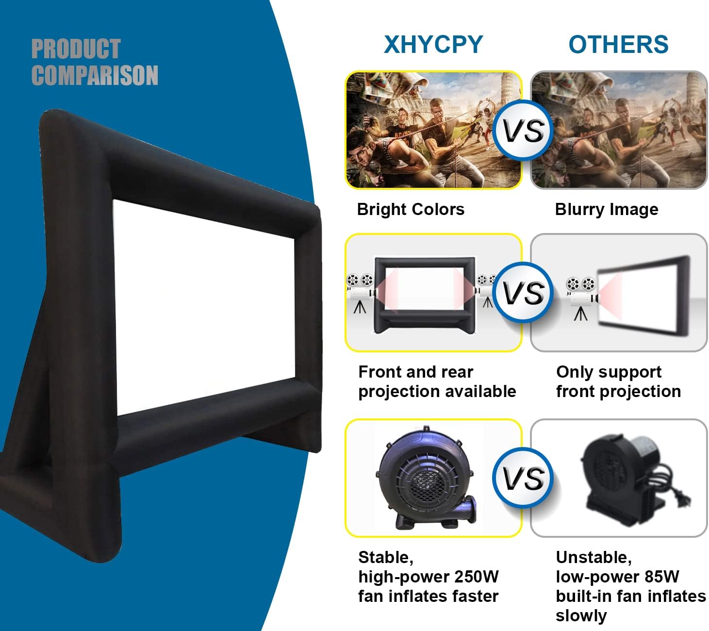 شاشة العرض القابلة للنفخ XHYCPY مثالية للاستخدام الداخلي والخارجي. مثالية لمشاهدة التلفزيون أو الأفلام، ولعب الألعاب، وإجراء العروض التقديمية، وحفلات الفنادق، والنزهات، وحفلات الزفاف، والحفلات، وعروض الدي جي. استعد لقضاء ليلة سينمائية مذهلة مع عائلتك أو أصدقائك في عطلة نهاية الأسبوع هذه!