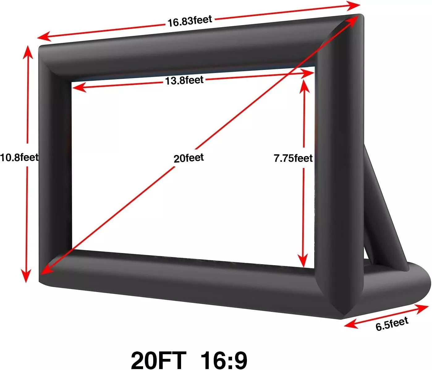 شاشة عرض قابلة للنفخ بطول 16قدم و 20 قدم للهواء الطلق مع شنطة تخزين و منفاخ هواء، شاشة نفخ سهلة التركيب لحفلات الافلام في الفناء الخلفي والحفلات ذات الطابع الخاص والاحتفالات