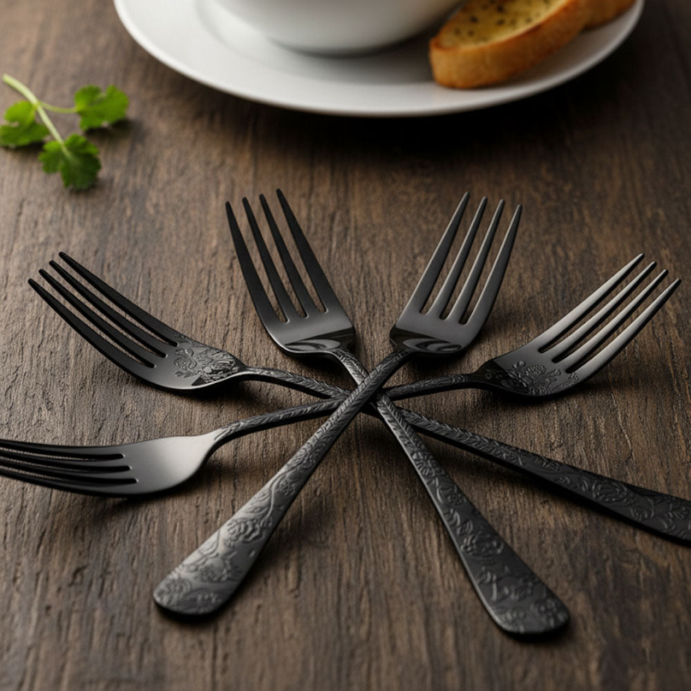 - 6 شوكة مائدة فاخرة من الستانلس ستيل.