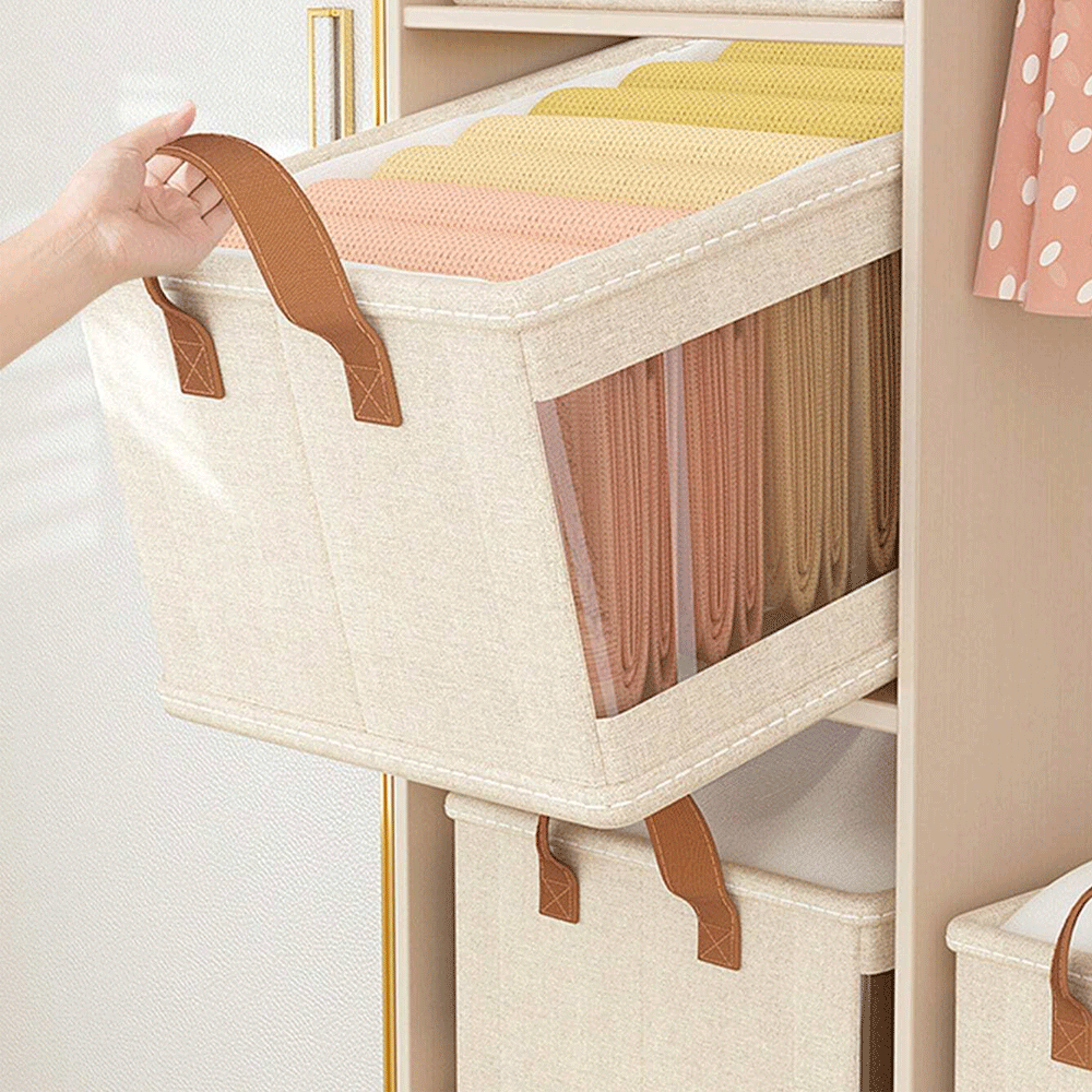 توفير المساحة: تم تصميم الدرج القابل للطي لتنظيم الملابس بسعة كبيرة، ومعزز حوله، وغير ناعم، وواسع من الداخل، ويمكن أن يزيد التكديس من استخدام المساحة لتلبية احتياجات التخزين الخاصة بك وحل مشكلة تخزين الملابس اليومية؛ يمكن طيها لتوفير المساحة عند عدم الاستخدام.