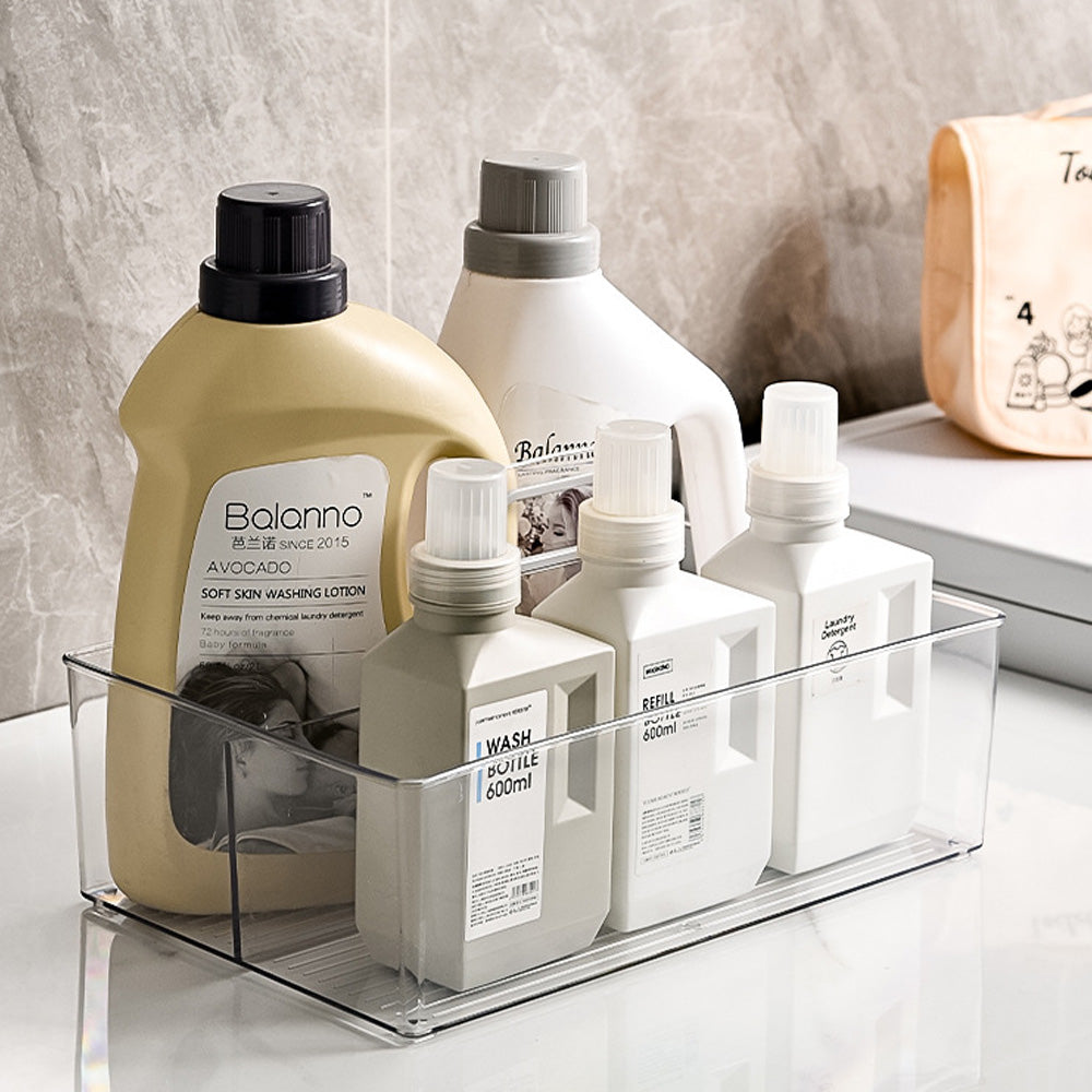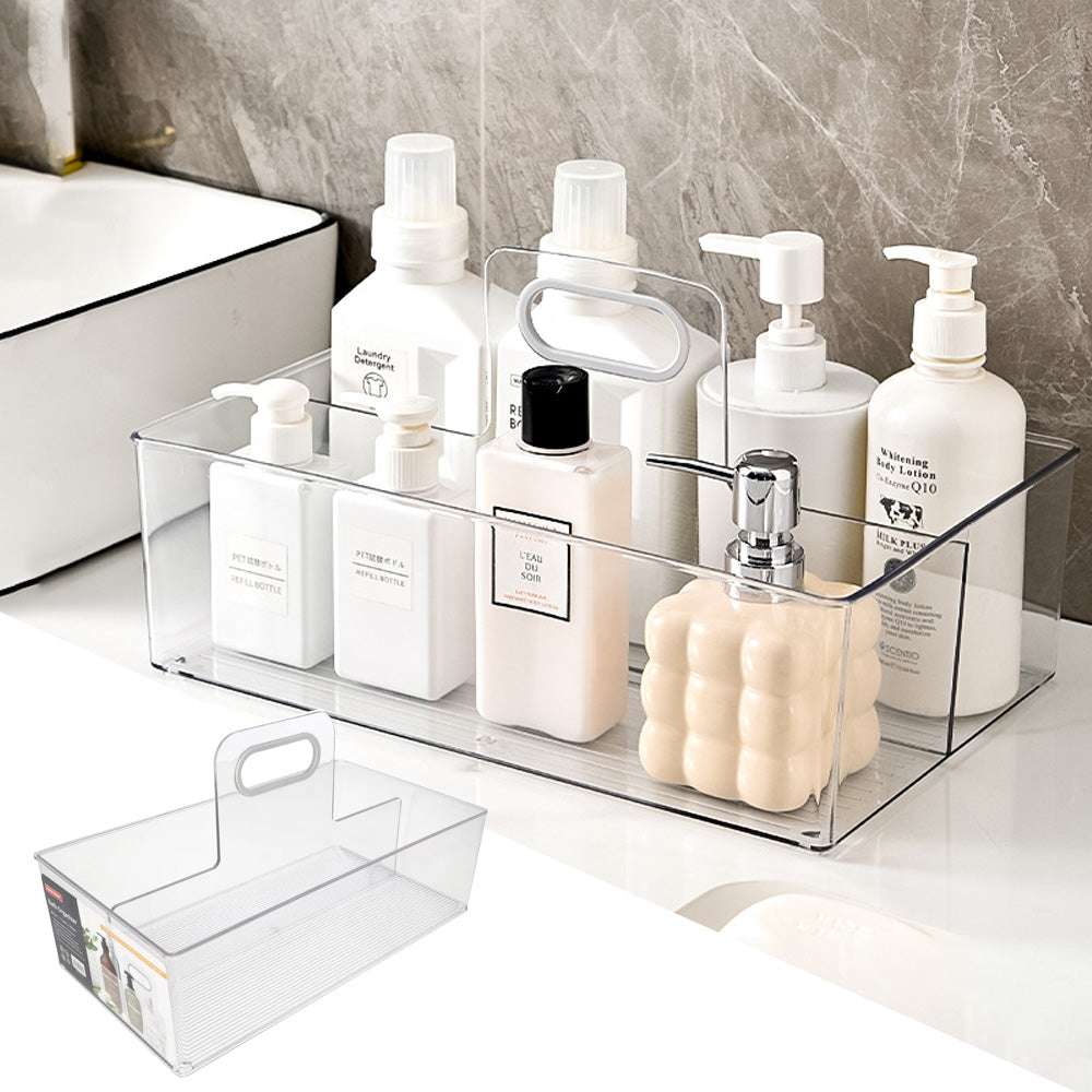 يُسهّل المقبض المريح المدمج عملية الرفع والحمل، بينما تساعد القاعدة المضلعة على تثبيت المحتويات. حجمه الكبير مثالي لتنظيم المشروبات، والوجبات الخفيفة، ومستلزمات المطبخ، ومستحضرات التجميل، وأدوات النظافة، ومواد التنظيف، أو مستلزمات الثلاجة.