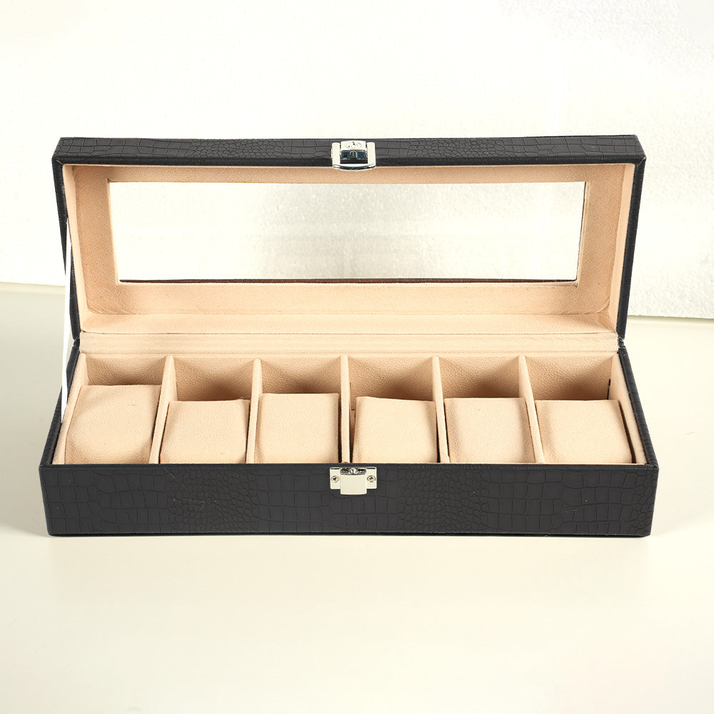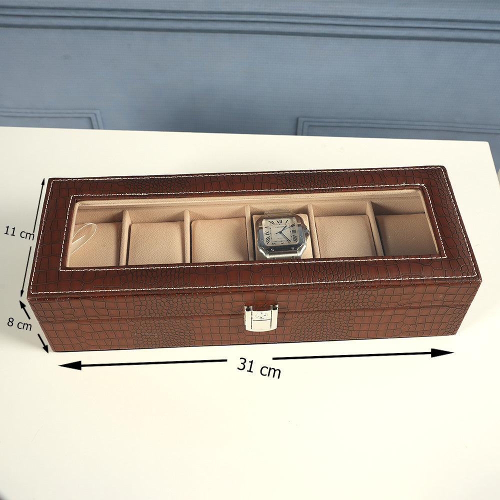 علبة ساعات جلدية فاخرة - علبة عرض بستة فتحات