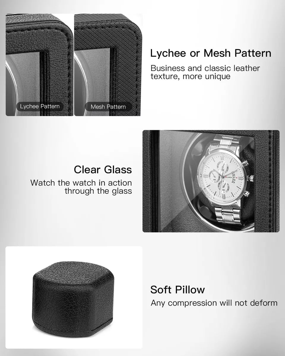 لفافة ساعات أوتوماتيكية من Vlando بمحرك ياباني فائق الهدوء، 4 أوضاع للدوران، جلد شبكي، محول من النوع C
