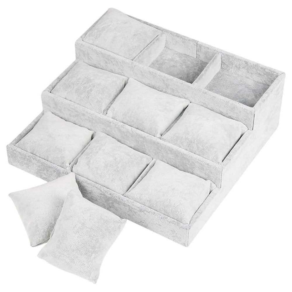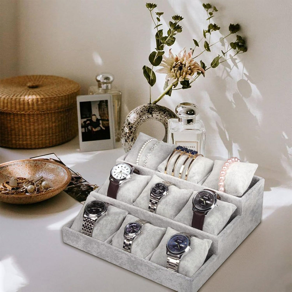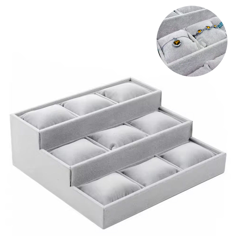 صندوق مع حامل مخمل للأساور والساعات 3 طبقات
