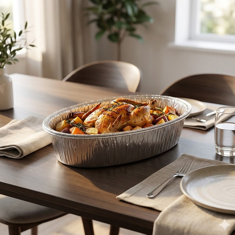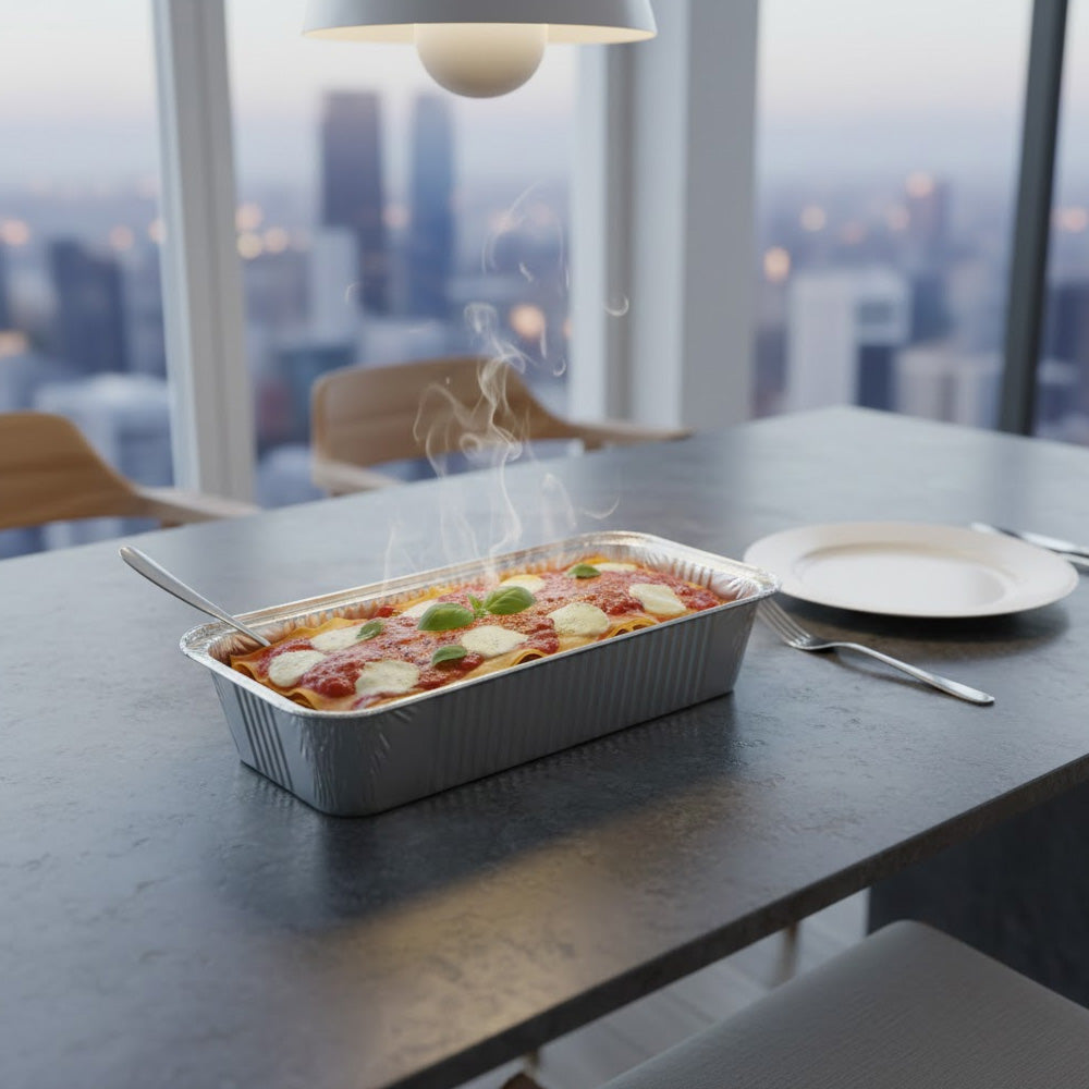 صواني خبز من رقائق الألومنيوم عالية الجودة، مصممة خصيصًا للخبز والتحميص والتقديم وتخزين الطعام. مصنوعة من الألومنيوم الآمن غذائيًا، تتميز هذه الصواني بالقوة ومقاومة الحرارة وخفة الوزن. مثالية للكيك والخبز واللازانيا واللحوم والوجبات الجاهزة. مناسبة للاستخدام في الفرن، ومثالية للاستخدام المنزلي والمخابز وخدمات الطعام والمطاعم.