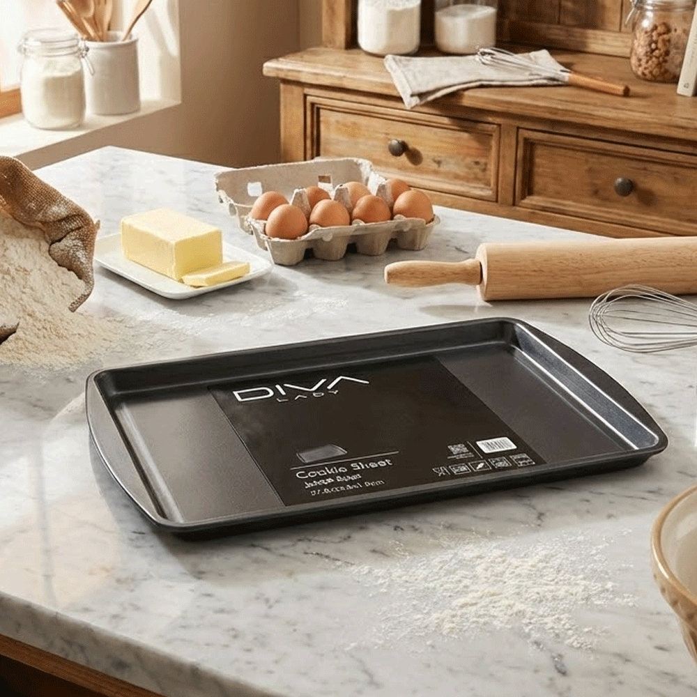 استمتعي بنتائج خبز مثالية مع صينية البسكويت من ديفا ليدي المصممة بعناية لتمنحك توزيع حرارة متوازن ونتائج متقنة في كل مرة. مثالية لتحضير البسكويت، الكوكيز، المعجنات الخفيفة، والمخبوزات اليومية بسهولة واحترافية.