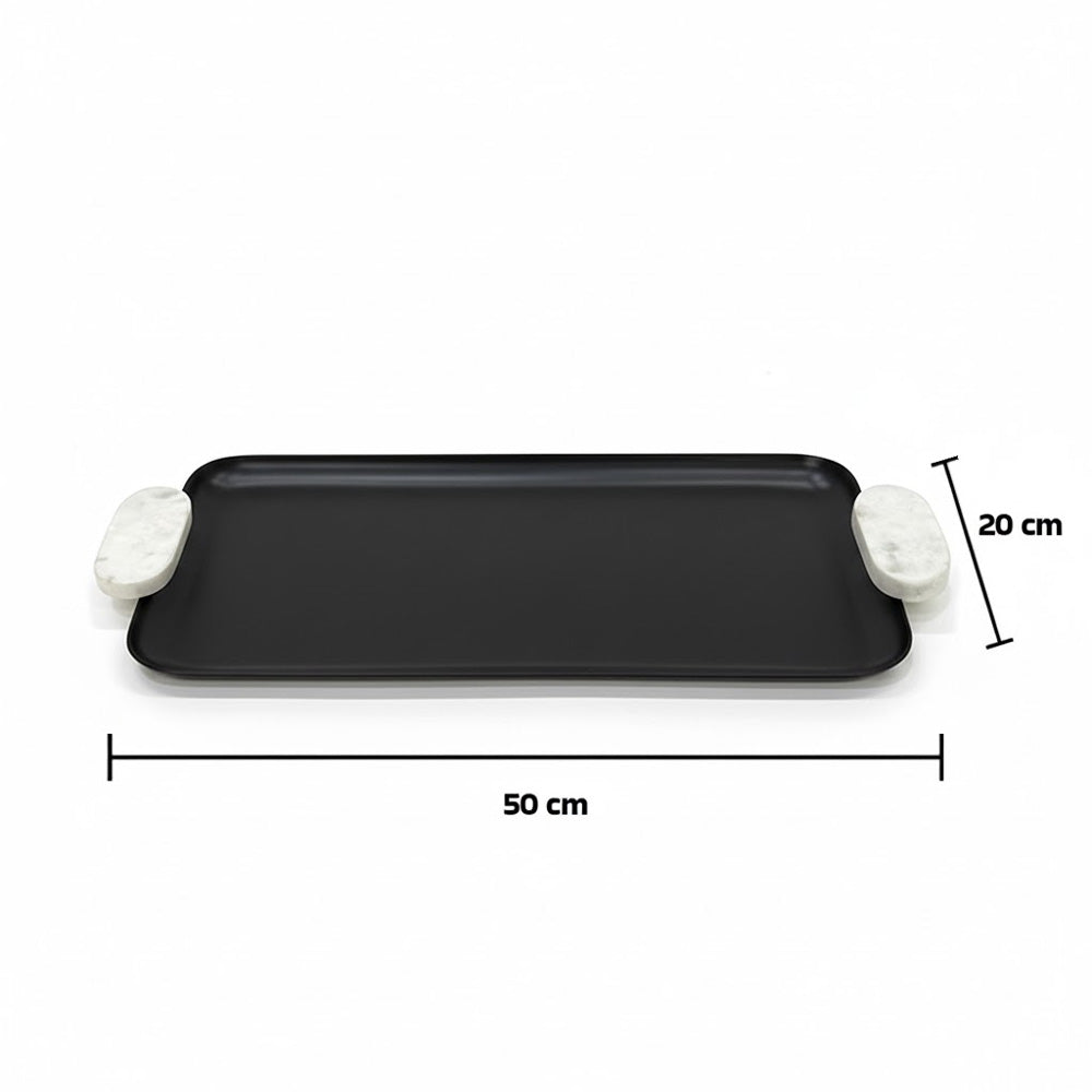 بحجمها الكبير (50 × 20 سم)، تُعد مثالية لتقديم المشروبات والمقبلات والحلويات، أو كصينية زينة على طاولات القهوة أو أسطح المطبخ أو طاولات الزينة. تساعد الحواف المرتفعة على تثبيت المحتويات، بينما توفر مقابض الرخام المتينة قبضة مريحة ولمسة نهائية فاخرة.