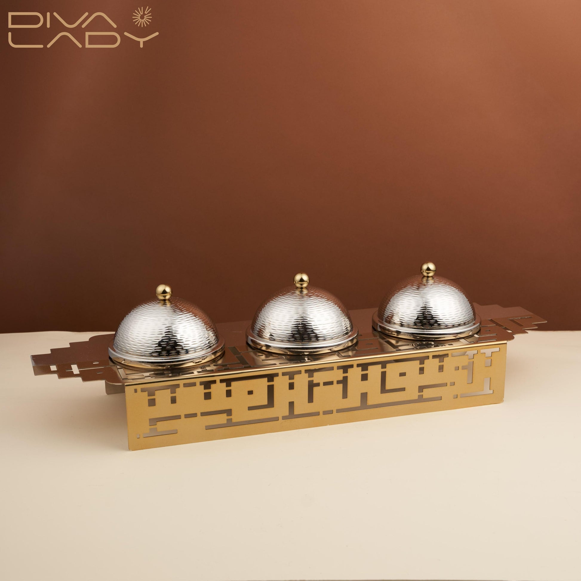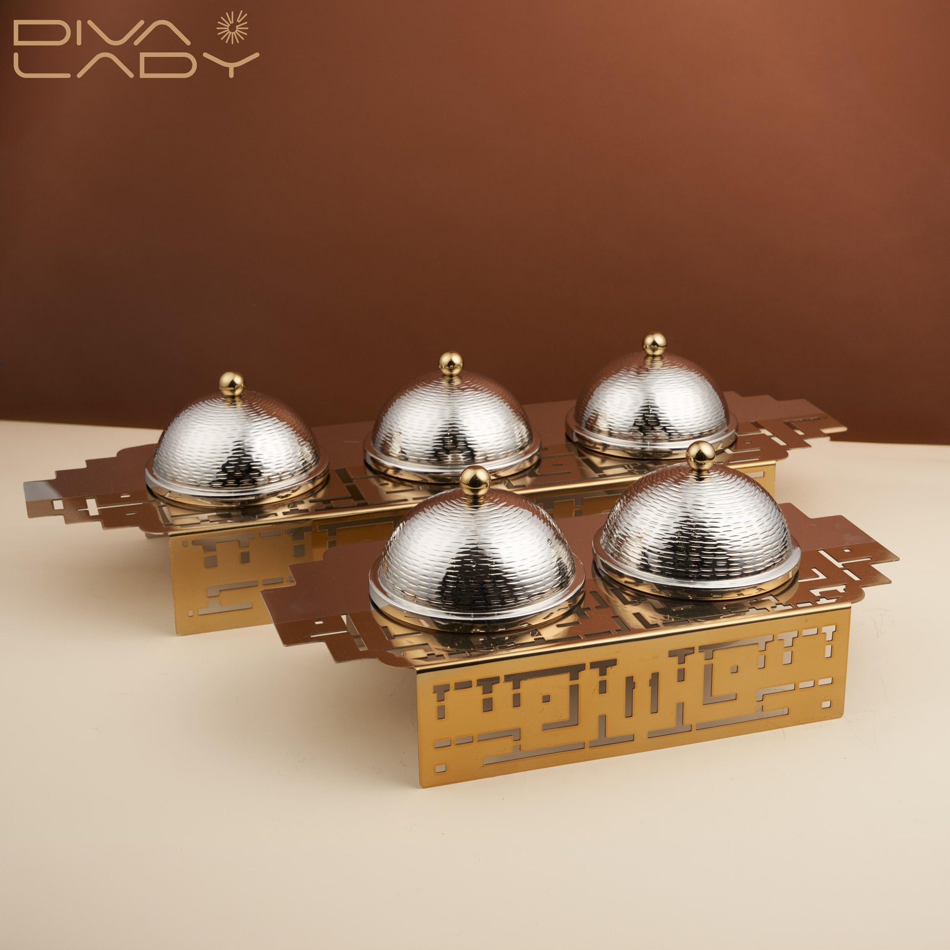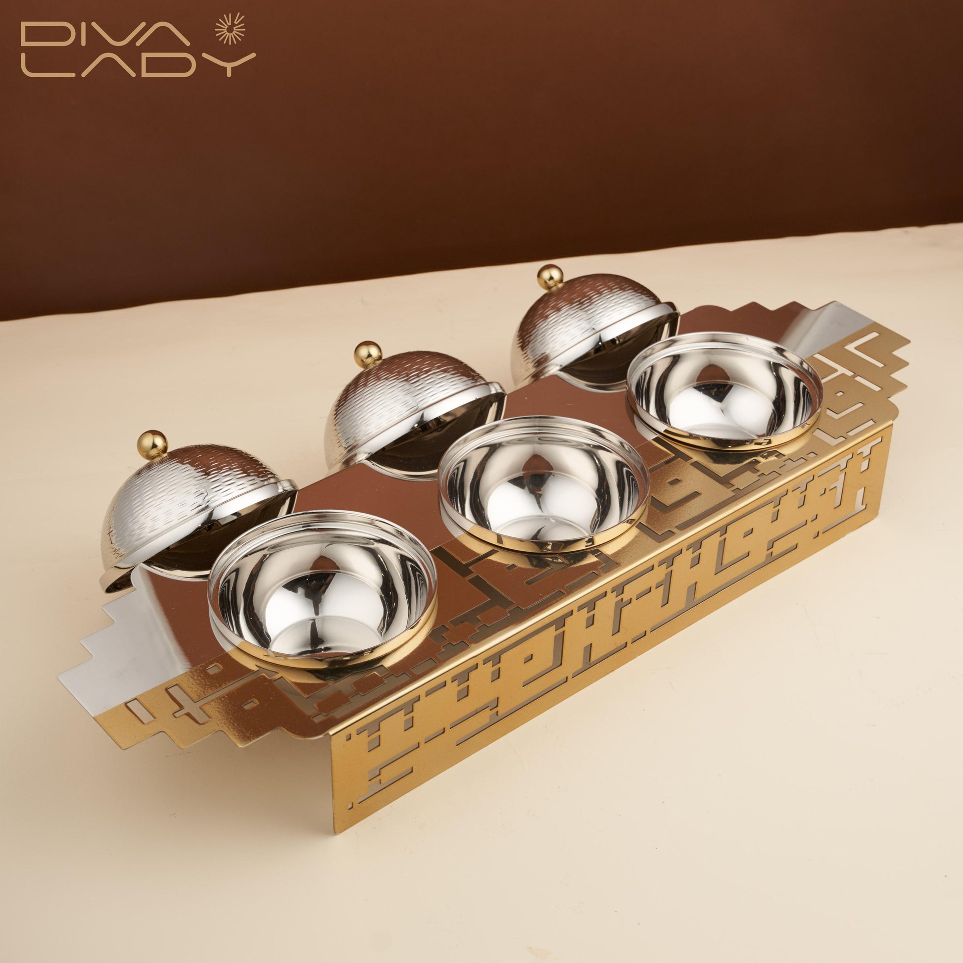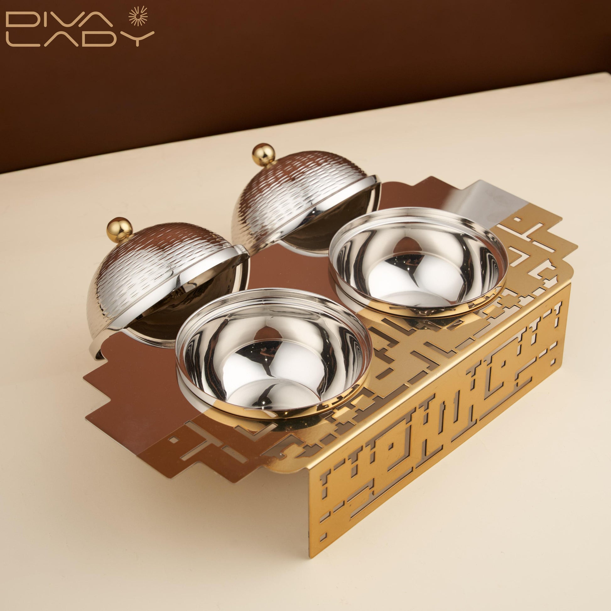 تفرّدي بتقديم أنيق ومائدة راقية عند الحصول على طقم الأوعية والصينية المدهشة . توفر حلاً أنيقًا ومتينًا لتقديم الطعام، بتفاصيل مفرغة متقنة، تمنح مزيدًا من الجمال والرقي على مائدتك، مصنوع من الاستانليس ستيل عالي الجودة المقاوم للصدأ، سهل التنظيف والعناية به.