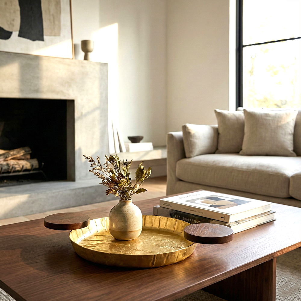 المقابض: مزودة بمقابض دائرية من الخشب الأسود على الجانبين لسهولة الحمل، مما يعزز من تصميمها العصري ويضفي لمسة فاخرة.