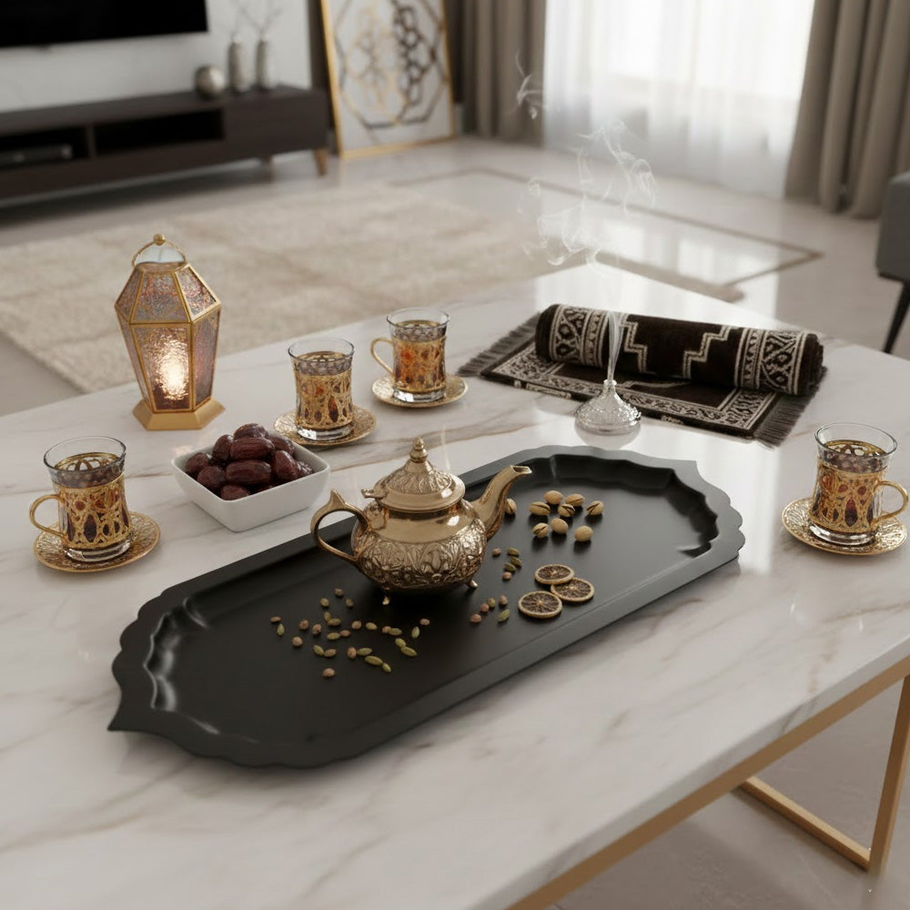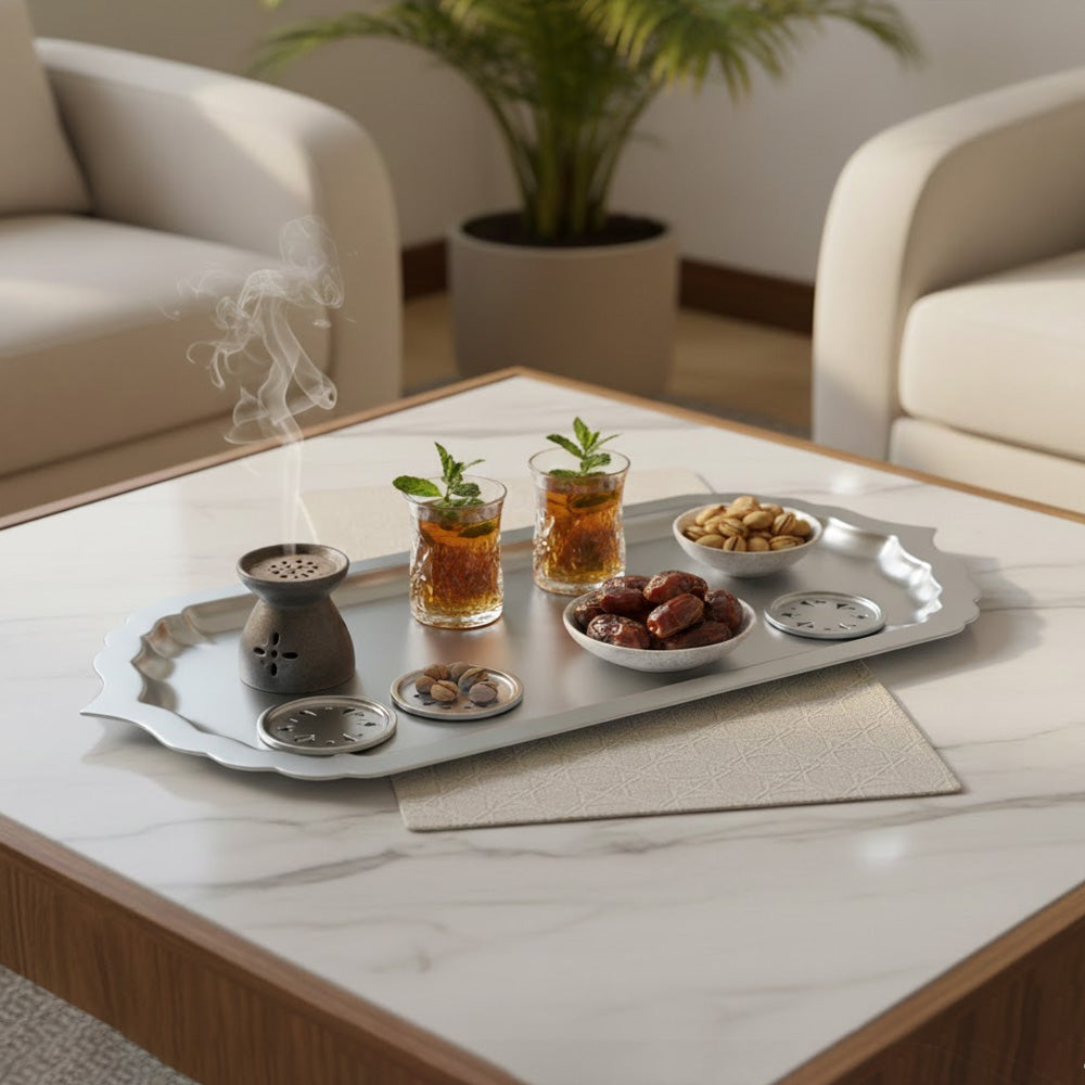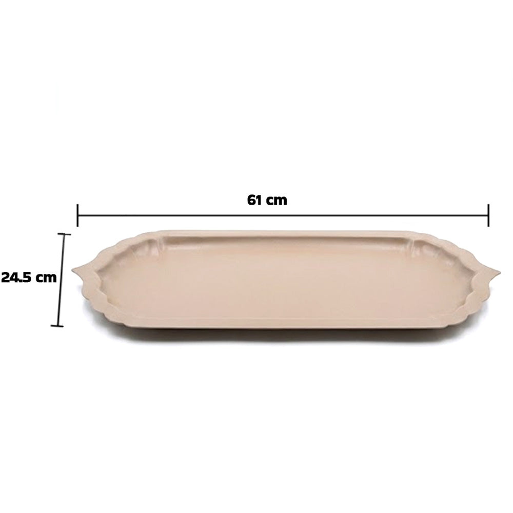 صينية تقديم مستطيلة كبيرة بتصميم أنيق ومتناسق، تُضفي لمسةً راقيةً على أي تجربة طعام أو عرض. شكلها الطويل وحوافها المنحوتة بدقة تُعطيها مظهرًا أنيقًا، مثالية لتقديم الحلويات والمعجنات والمقبلات والمشروبات بأناقةٍ لا مثيل لها. حجمها الكبير يجعلها مثاليةً للتجمعات والمناسبات الخاصة، أو حتى لتقديمها بشكلٍ فاخرٍ في المناسبات اليومية. بفضل ألوانها المحايدة الخالدة، تُناسب هذه الصينية أنماط المائدة العصرية والكلاسيكية على حدٍ سواء.