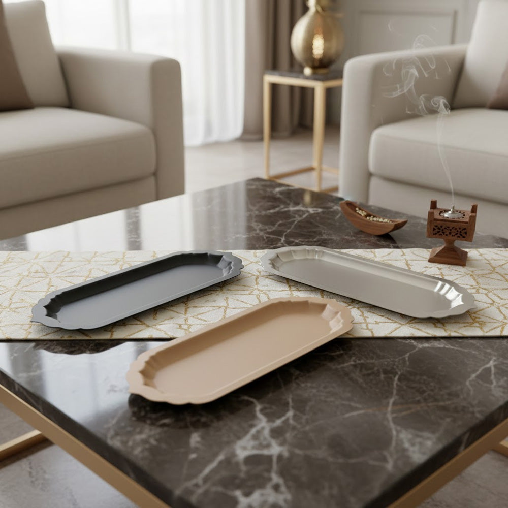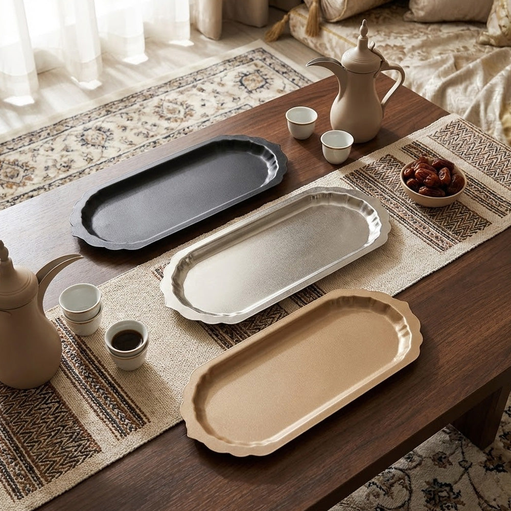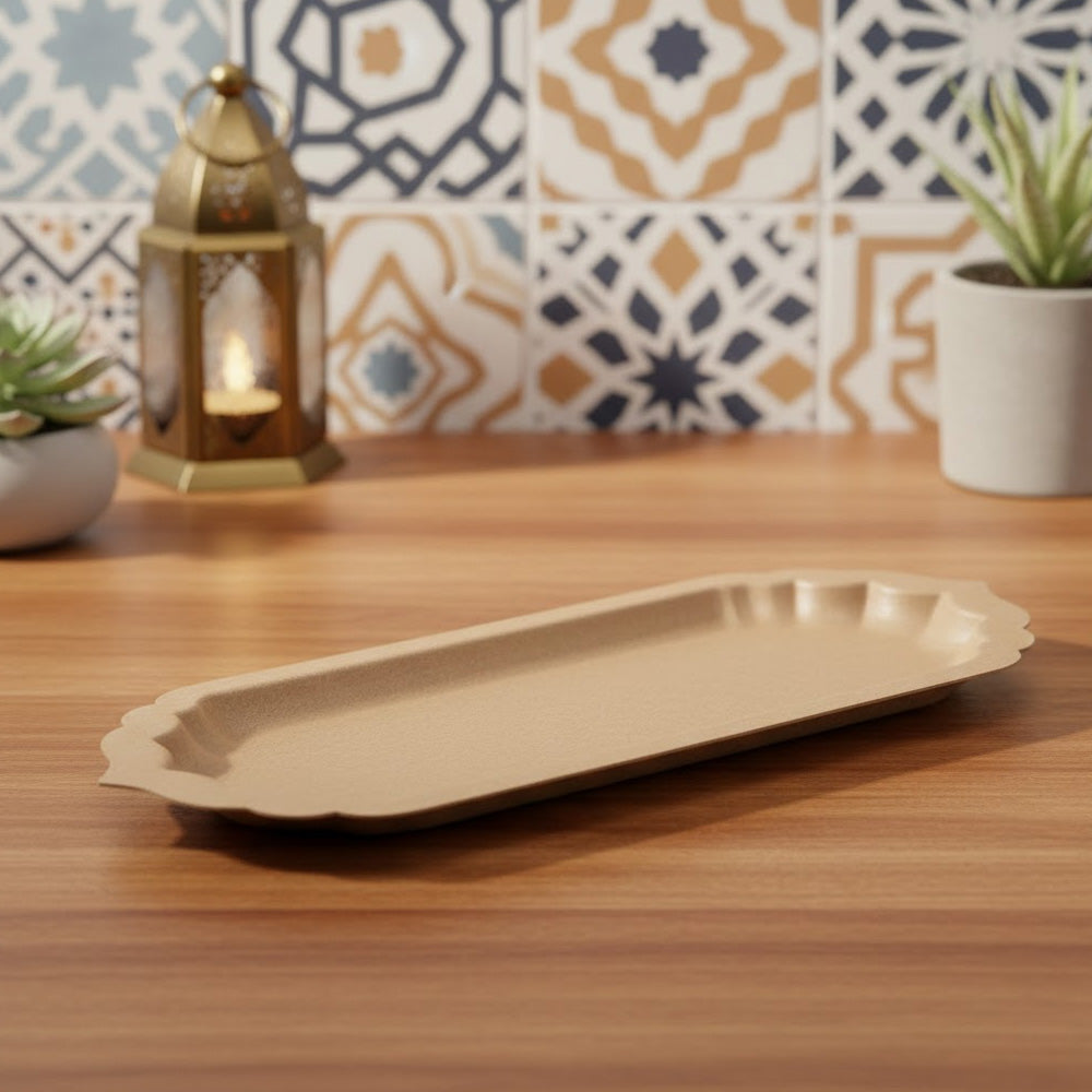 صينية تقديم مستطيلة متوسطة الحجم، بتصميمها الأنيق الخالد، تضفي لمسة من الرقي البسيط على مائدتك. تتميز بخطوطها الانسيابية وحوافها المرتفعة قليلاً، لتجمع بين الجمال والعملية. مثالية لتقديم الحلويات والمعجنات والمشروبات، أو لترتيب أدوات المائدة بأسلوب أنيق. تناسب أبعادها المتناسقة وألوانها المحايدة تجعلها إضافة مثالية لديكورات الطعام الراقية.