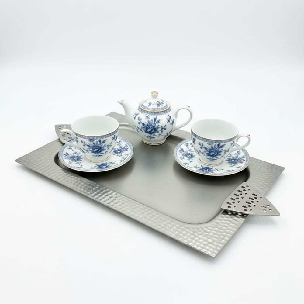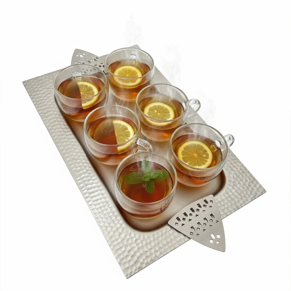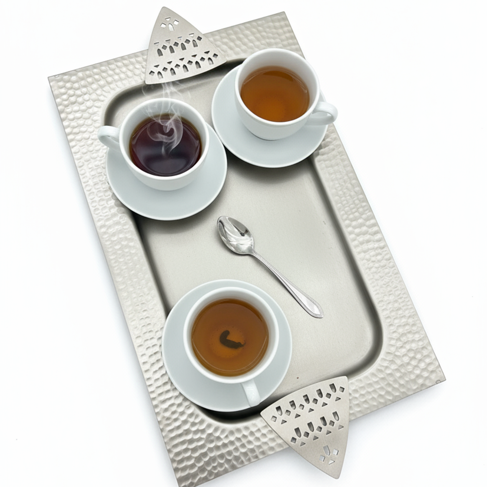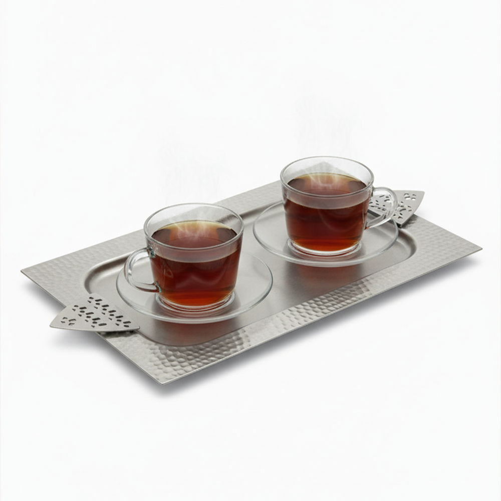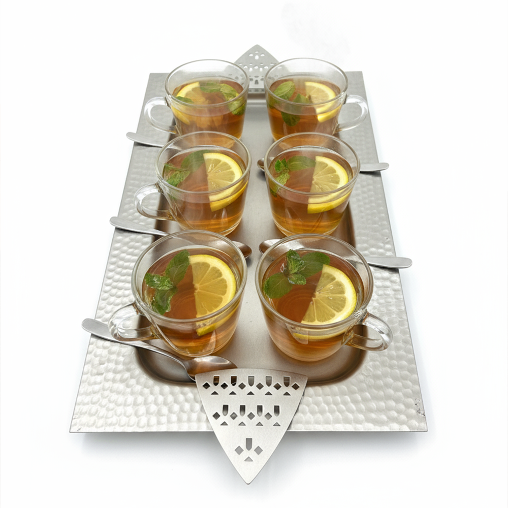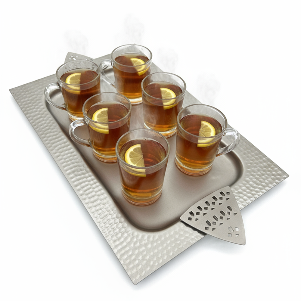 مثالية لتقديم القهوة العربية، الحلويات، أو التمور بأسلوب يجمع بين الأصالة والحداثة. سهلة التنظيف وتدوم طويلاً بفضل جودتها العالية.