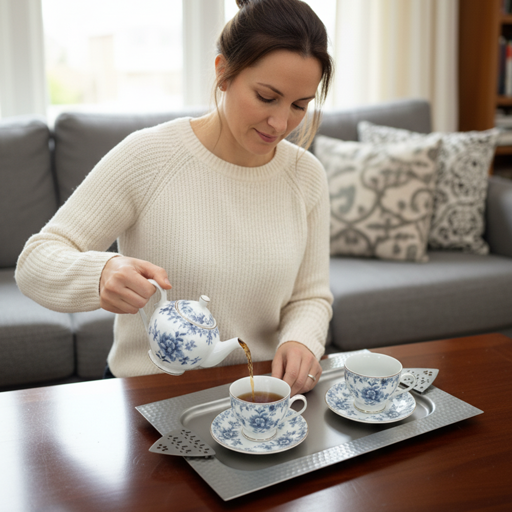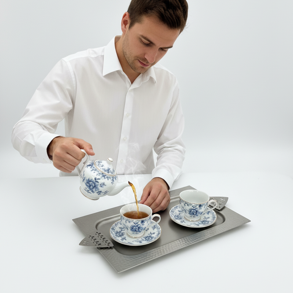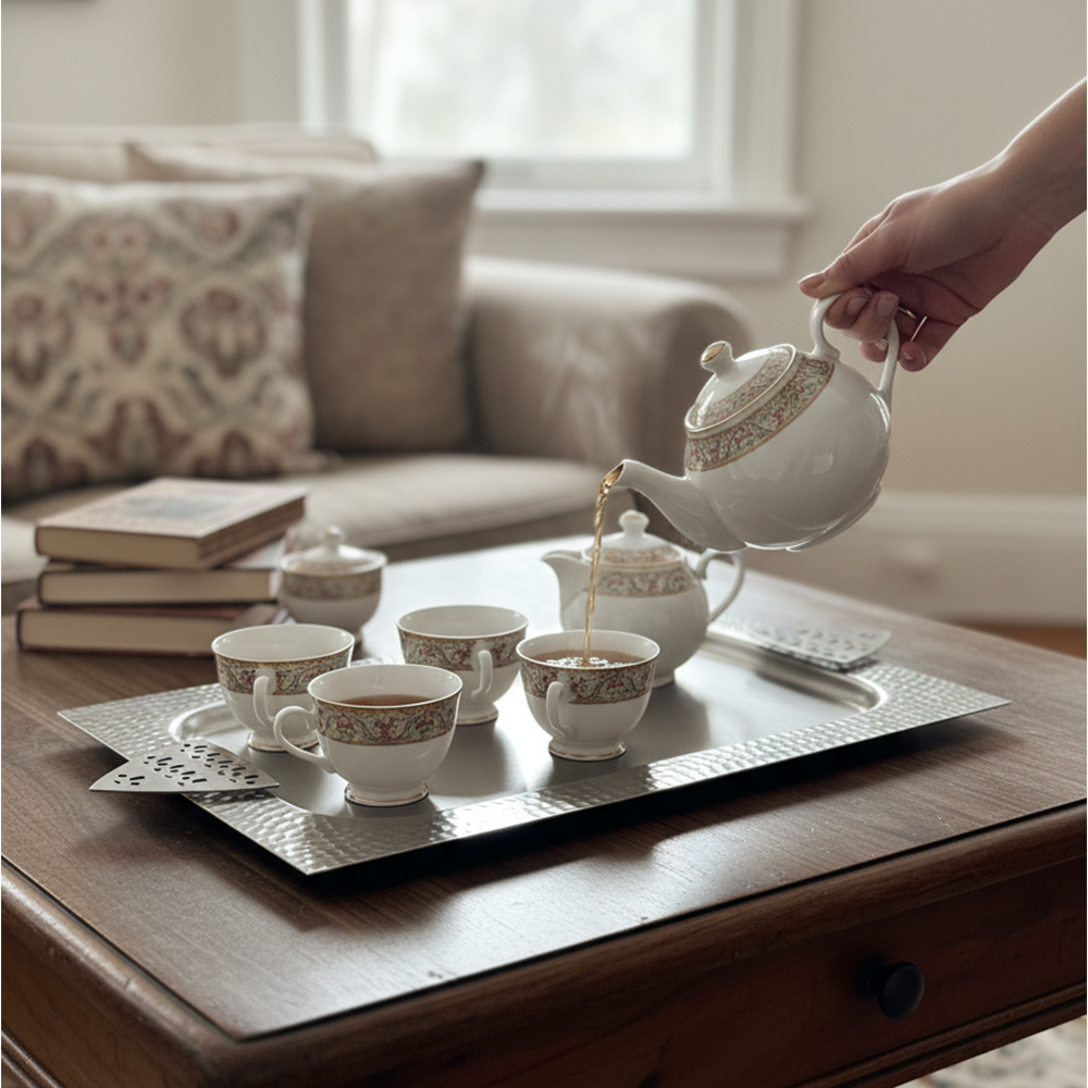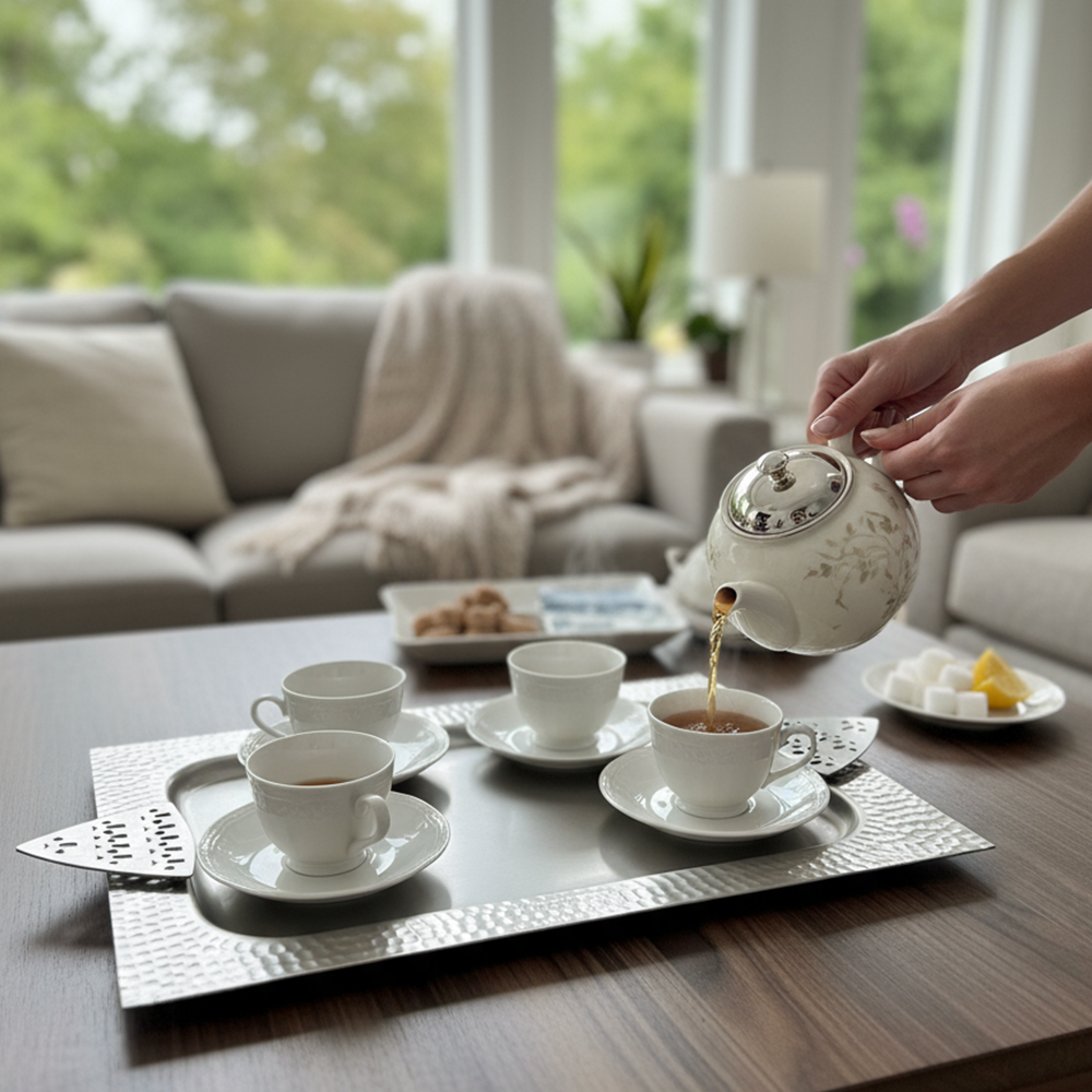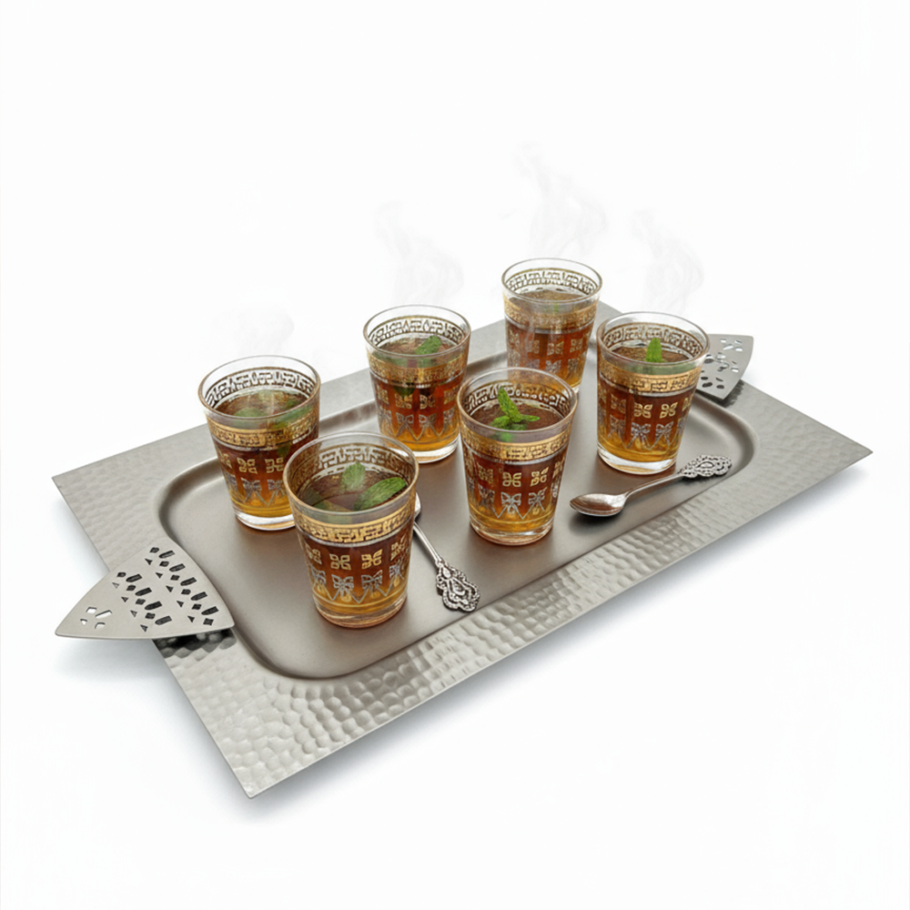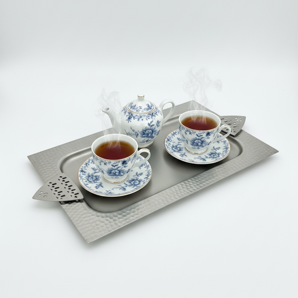 مثالية لتقديم القهوة العربية، الحلويات، أو التمور بأسلوب يجمع بين الأصالة والحداثة. سهلة التنظيف وتدوم طويلاً بفضل جودتها العالية.
