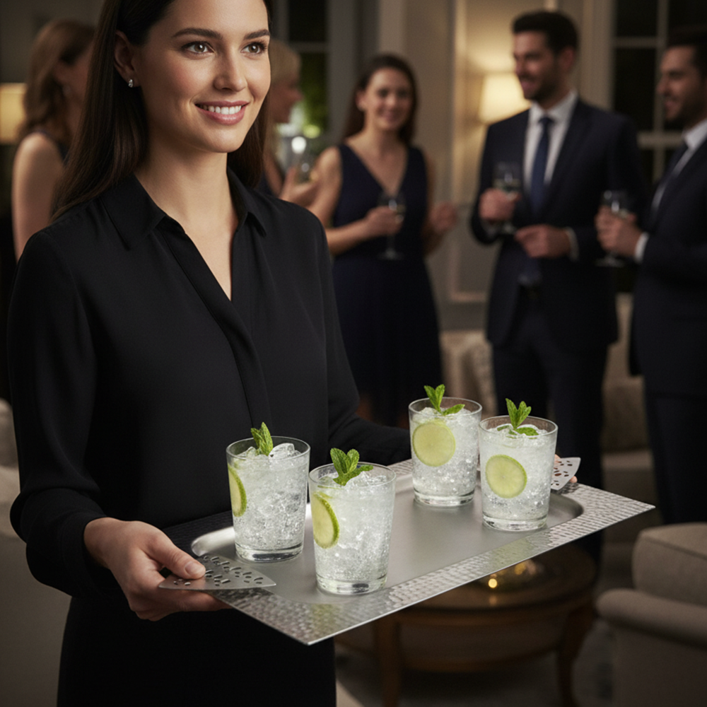 مصنوعة من معدن متين مقاوم للصدأ بلمسة فضية لامعة مع نقوش هندسية أنيقة عند الأطراف، تمنحها مظهرًا راقيًا يليق بكل مناسبة.