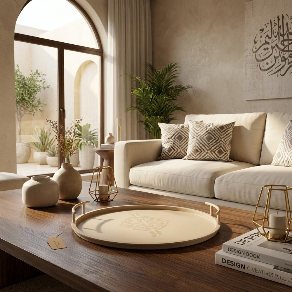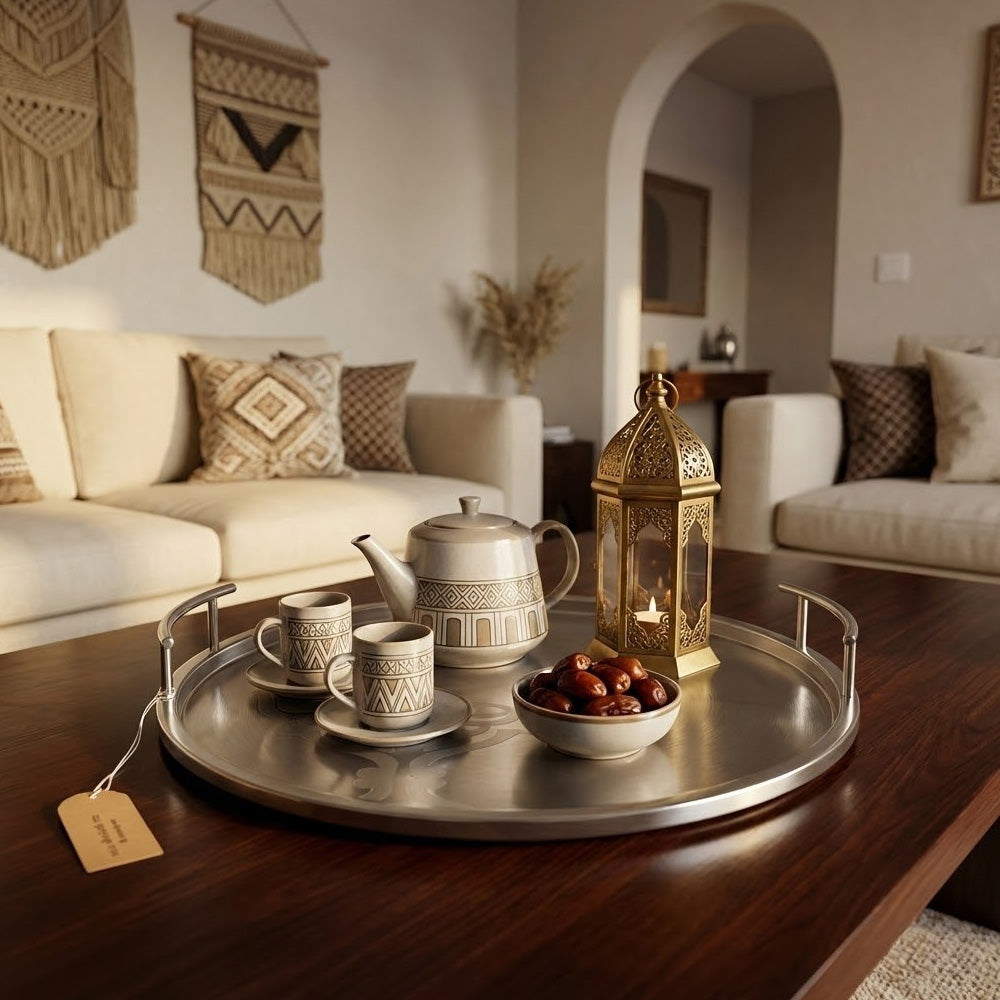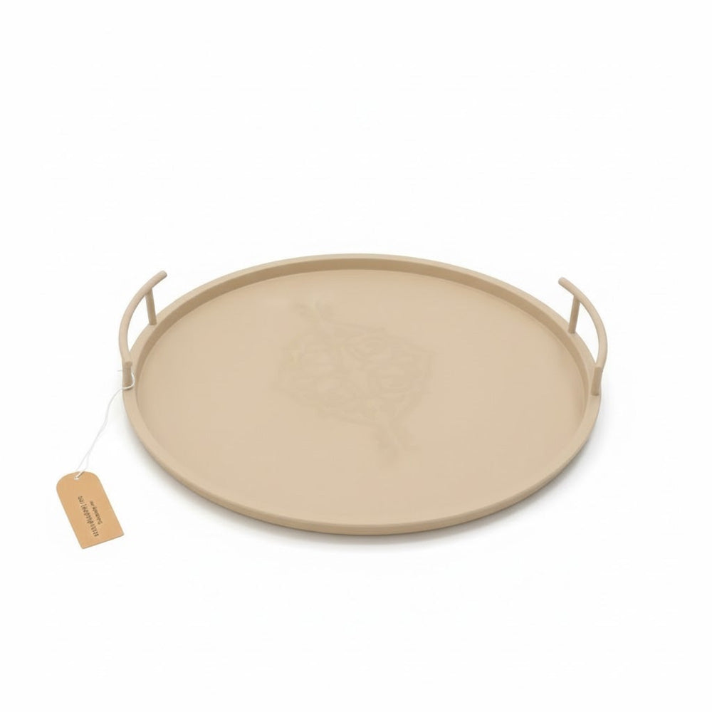 مثالية لتقديم القهوة والشاي والمشروبات والوجبات الخفيفة، كما تُضفي هذه الصينية لمسة جمالية رائعة على طاولات القهوة أو أسطح المطبخ أو غرف الطعام. تصميمها الدائري البسيط يُناسب الديكورات العصرية والكلاسيكية على حد سواء.