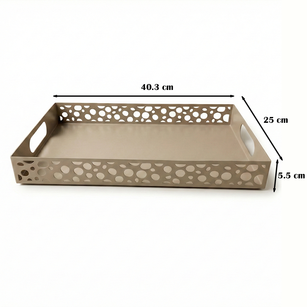 طقم صواني تقديم معدنية بنقشة الدوائر – فضي وبيج (40.3×25.1×5.5 سم)