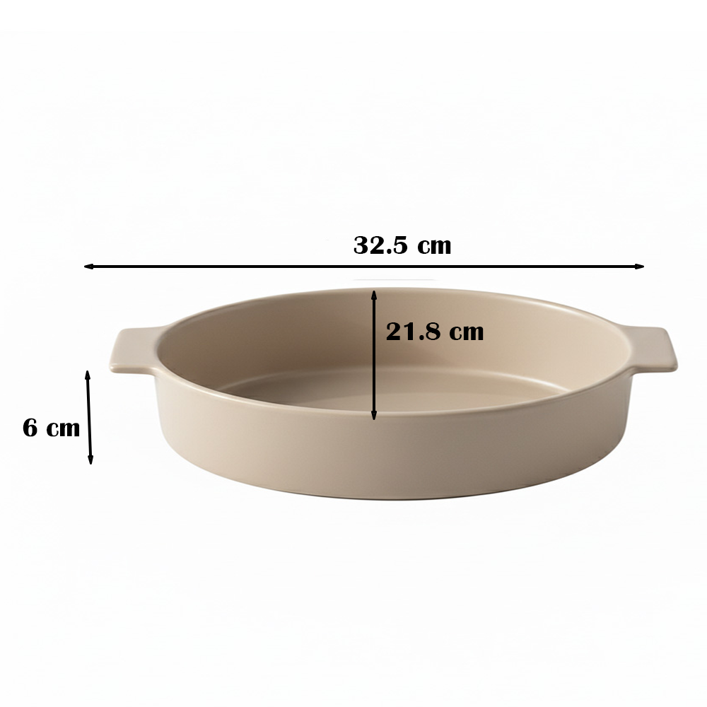 صينية فرن سيراميك دائرية عميقة بمقابض جانبية – تصميم أنيق للطهي والتقديم