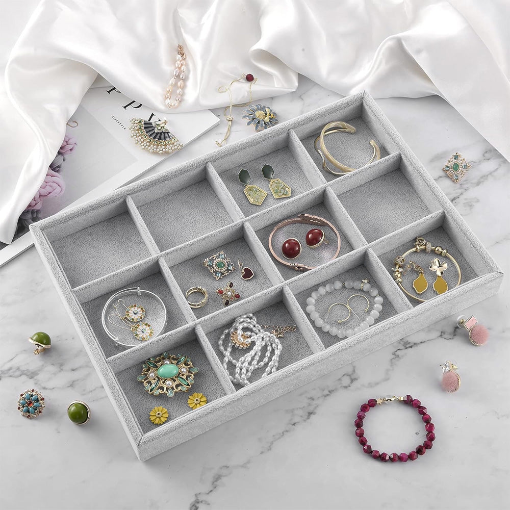 صينية مجوهرات مخملية مكونة من 12 شبكة