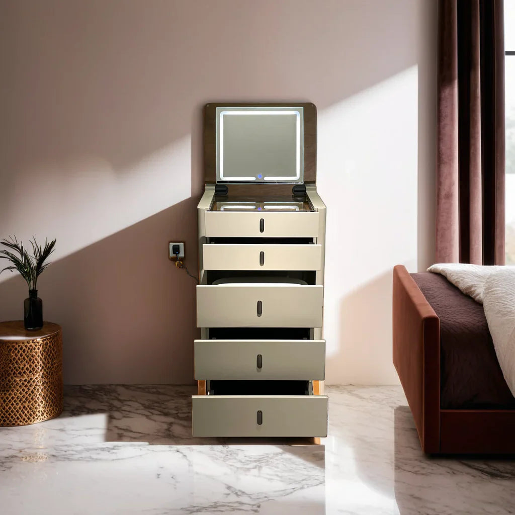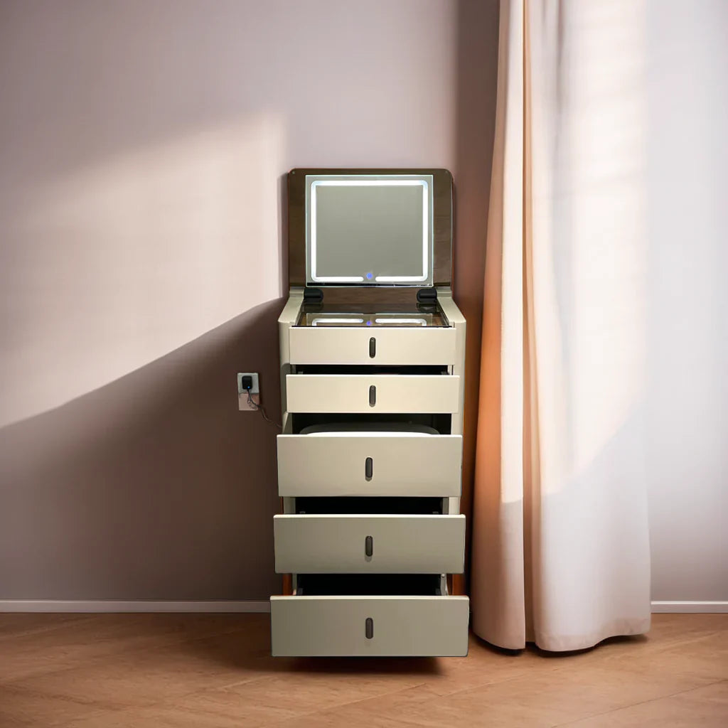 ارتقِ بروتين جمالك اليومي مع طاولة الزينة الرائعة من جرافون. تتميز هذه القطعة الأنيقة بمرآة أنيقة ومساحة تخزين واسعة، وتضفي لمسة من الفخامة على مساحتك. مصنوعة بدقة وأناقة، انغمس في فن الاستعداد مع طاولة الزينة من جرافون.