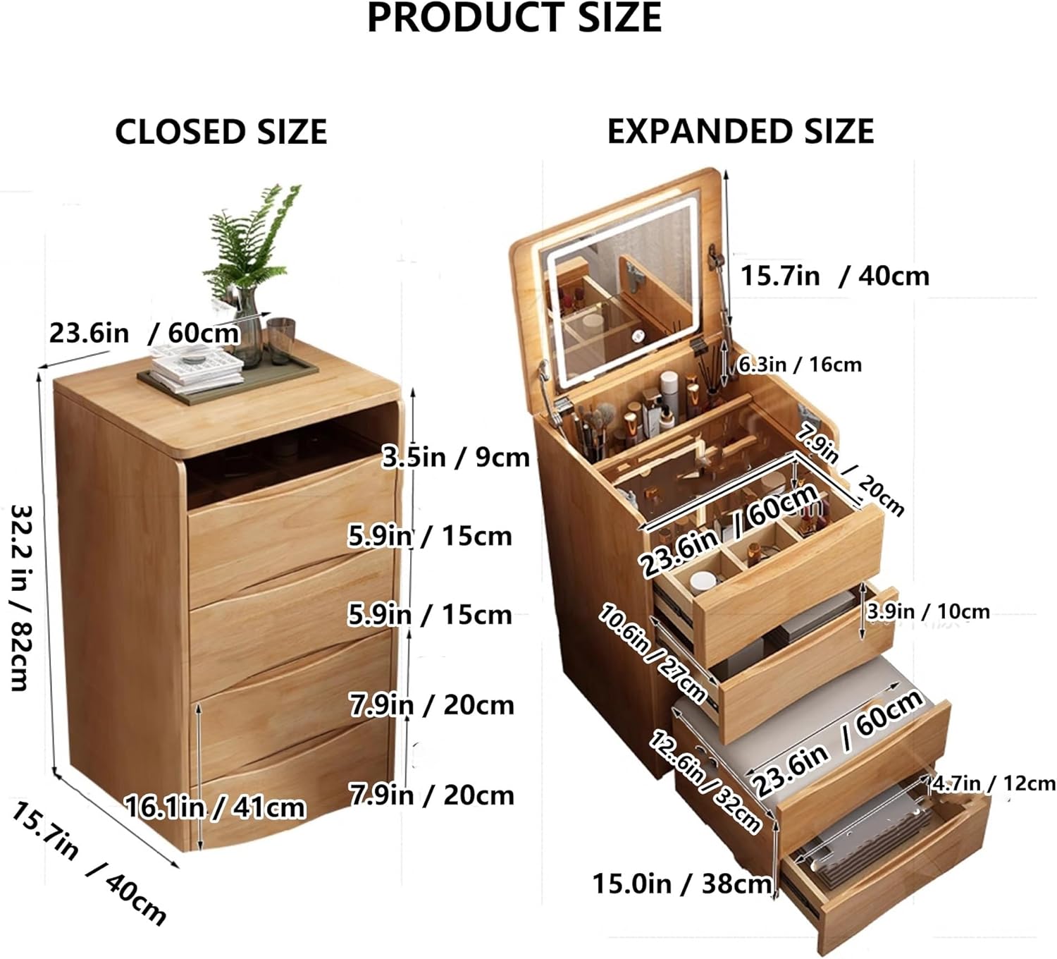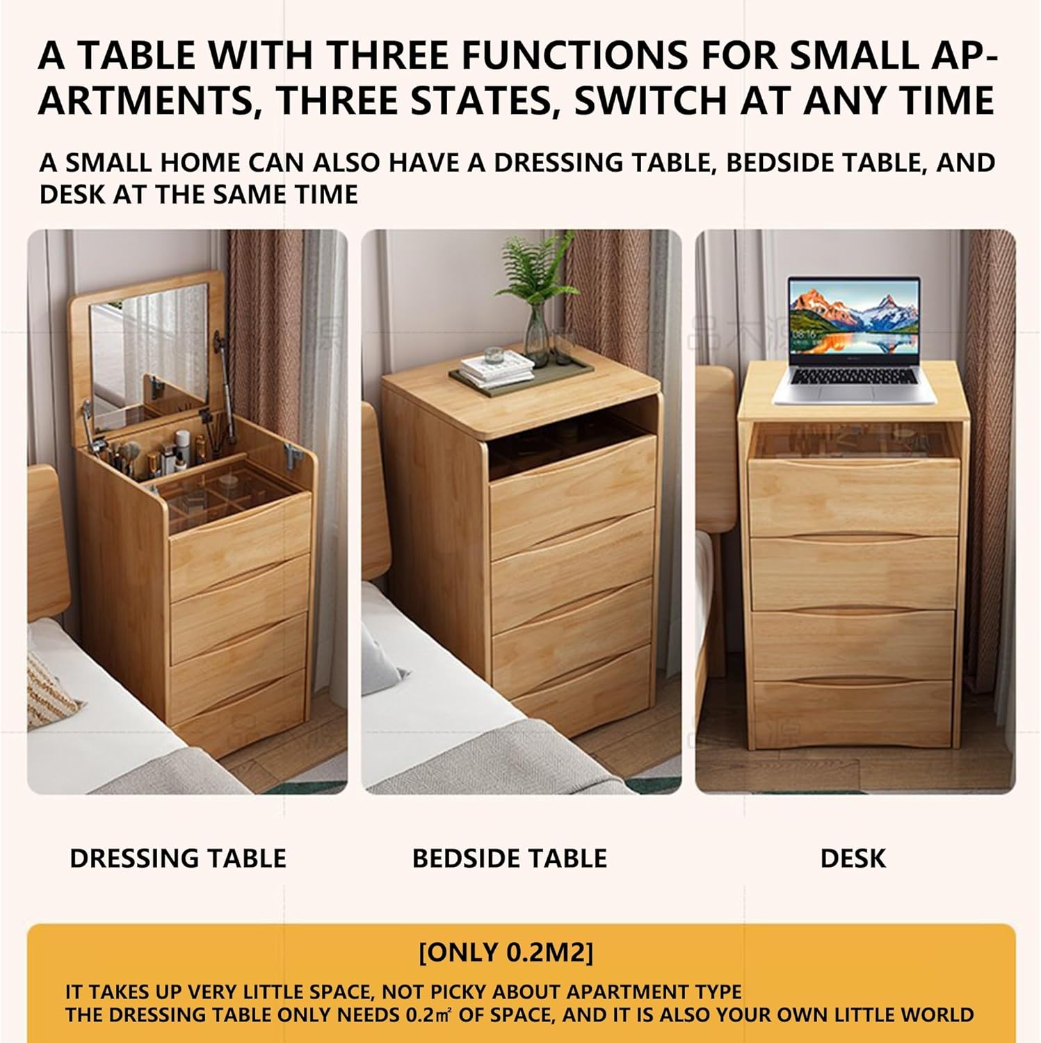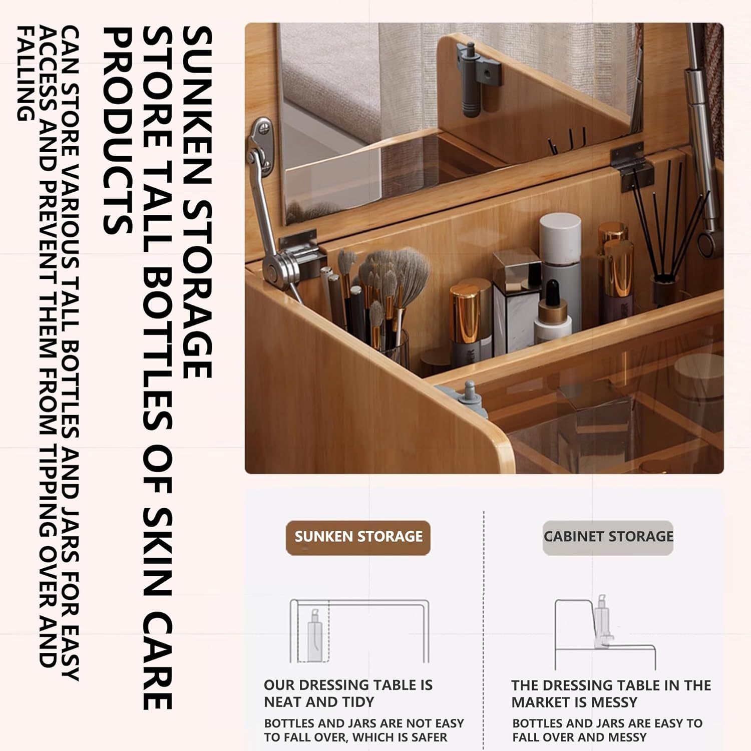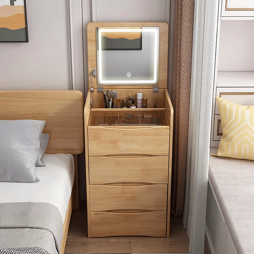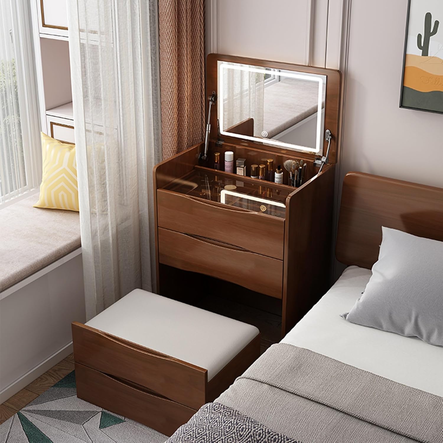 5. 【رضا العملاء】: توفر طاولة الزينة ذات الغطاء القابل للطي حلاً أنيقًا وعمليًا لروتين جمالك اليومي. اجمع بين الوظيفة والأناقة في منزلك مع طاولة الزينة وخزانة السرير متعددة الاستخدامات.