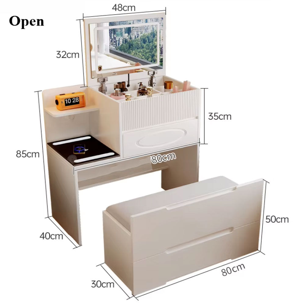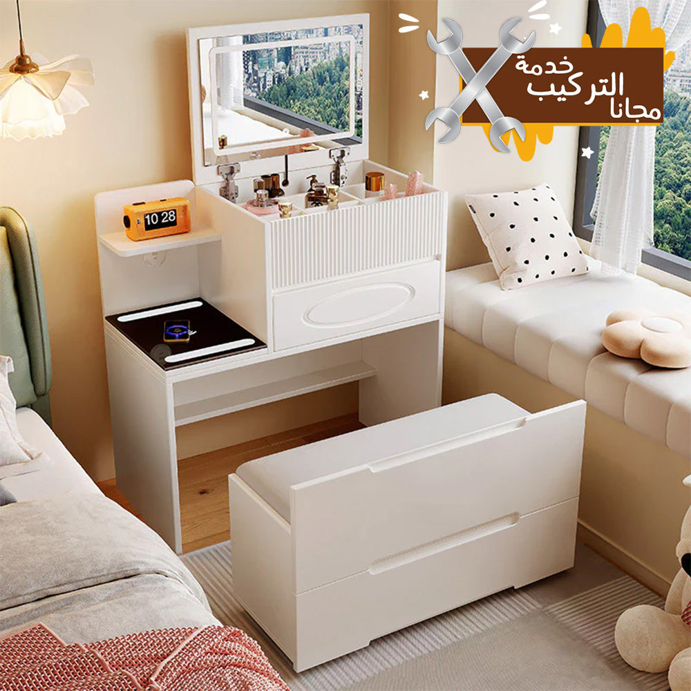 طاولة ماكياج مع مقعد ومرآة مضيئة