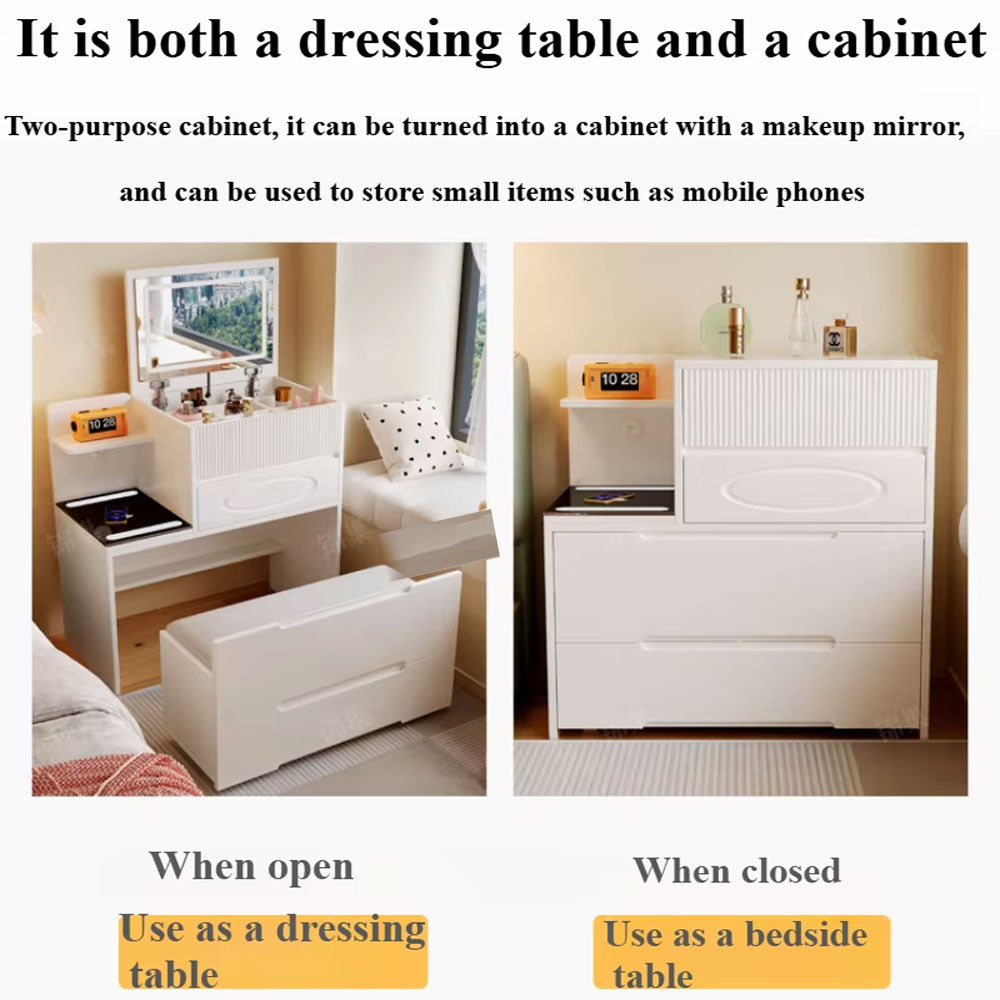 - تصميم متعدد الوظائف: تتميز طاولة الزينة لدينا باستضافة متنوعة من مساحات التخزين، بما في ذلك غرف التخزين المفتوحة والأدراج، مما يوفر مساحة واسعة لجميع أساسيات جمالك. حافظ على التنظيم والكفاءة مع مكتب الزينة المتكامل مع كرسي غرفة النوم.