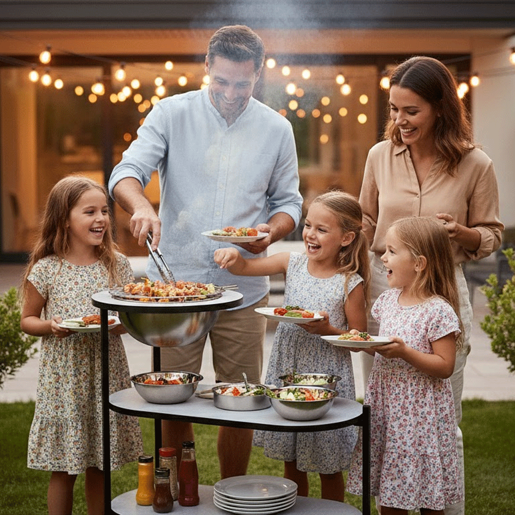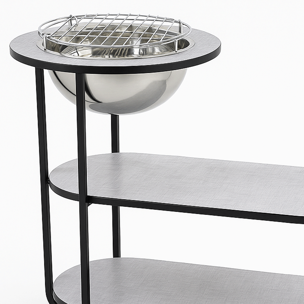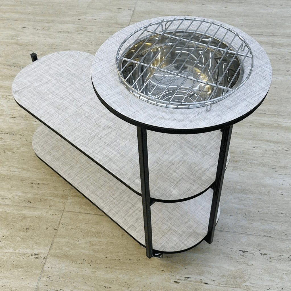 تم تصميم هذه الطاولة لتمنحك تجربة شواء مريحة وعملية، مع الحفاظ على مظهر أنيق ينسجم مع أي ديكور خارجي. بفضل تصميمها الذكي والمتين، تُعد خيارًا مثاليًا لكل من يبحث عن الأناقة والوظيفة في آنٍ واحد.