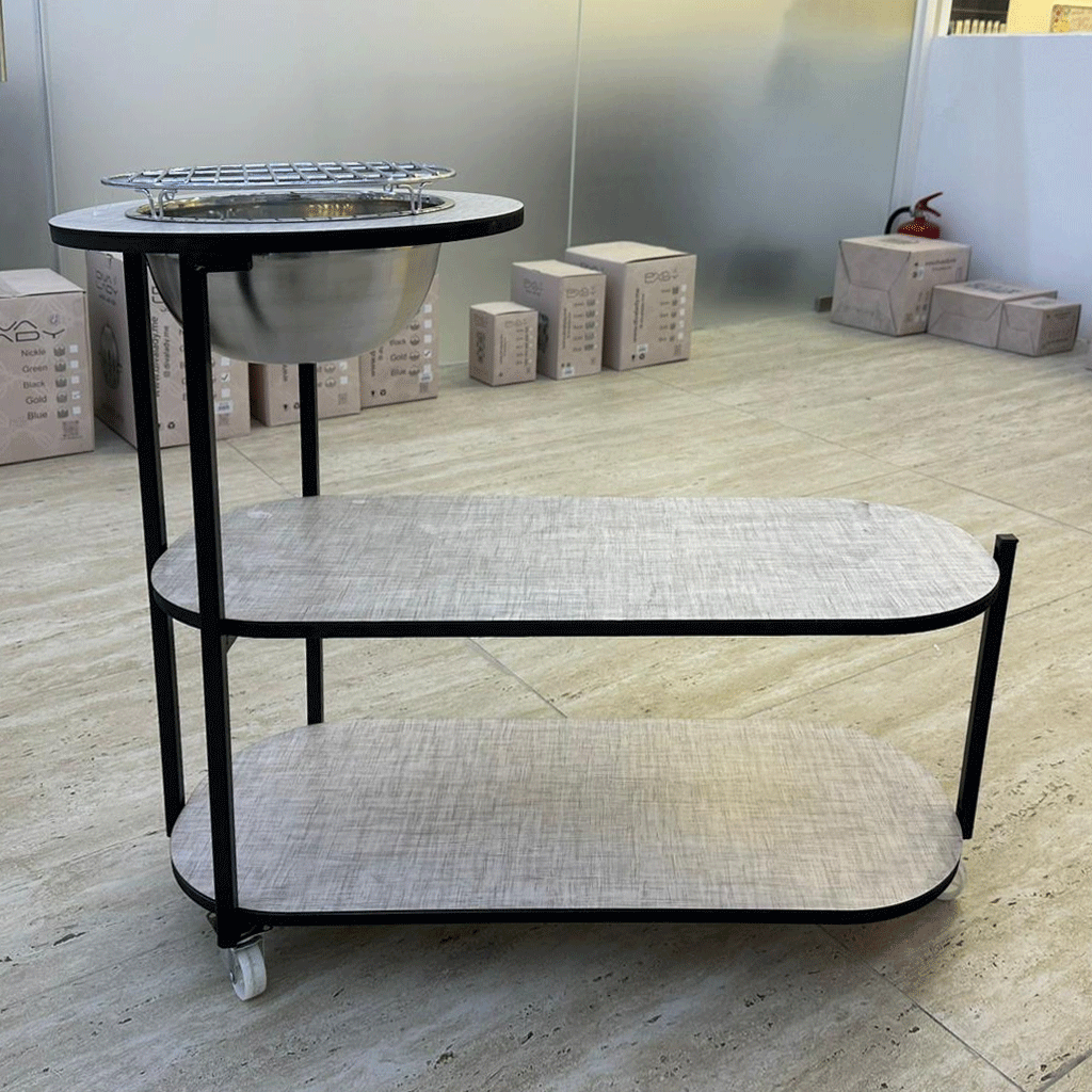 🧺 مساحات تخزين متعددة: الرفوف السفلية توفر مساحة إضافية لوضع أدوات الشواء، الأطباق أو مستلزمات التقديم.
