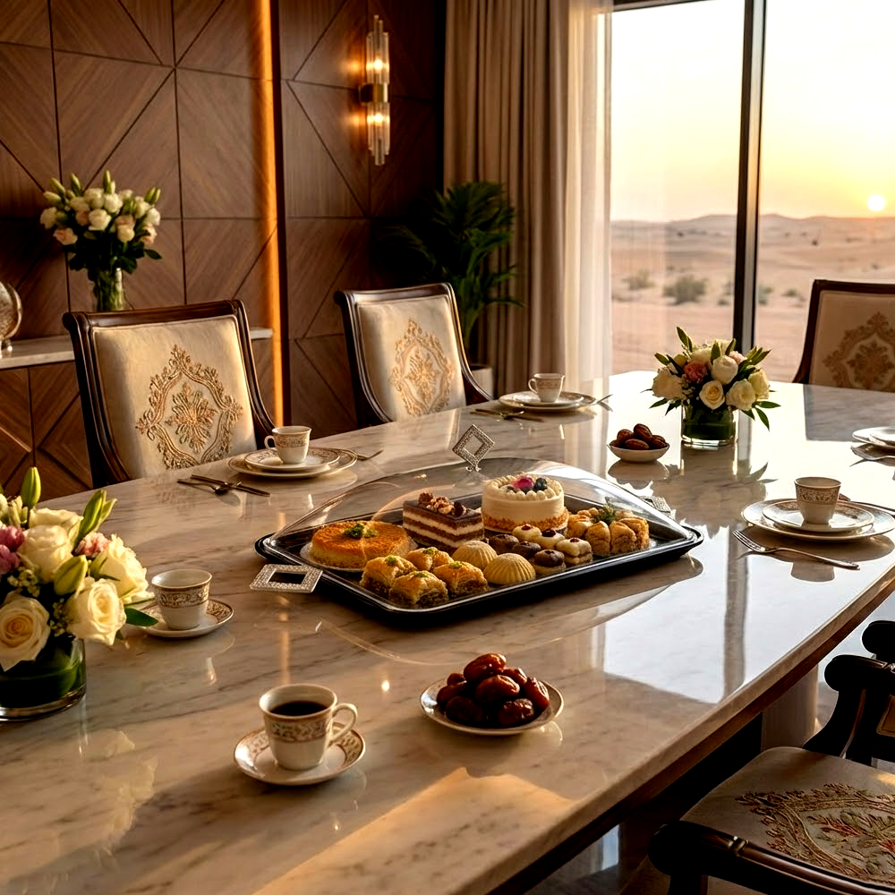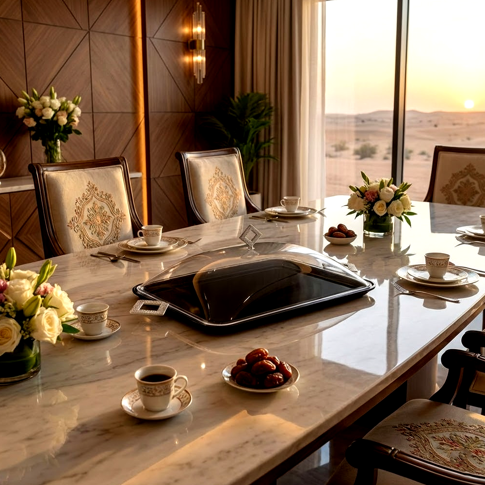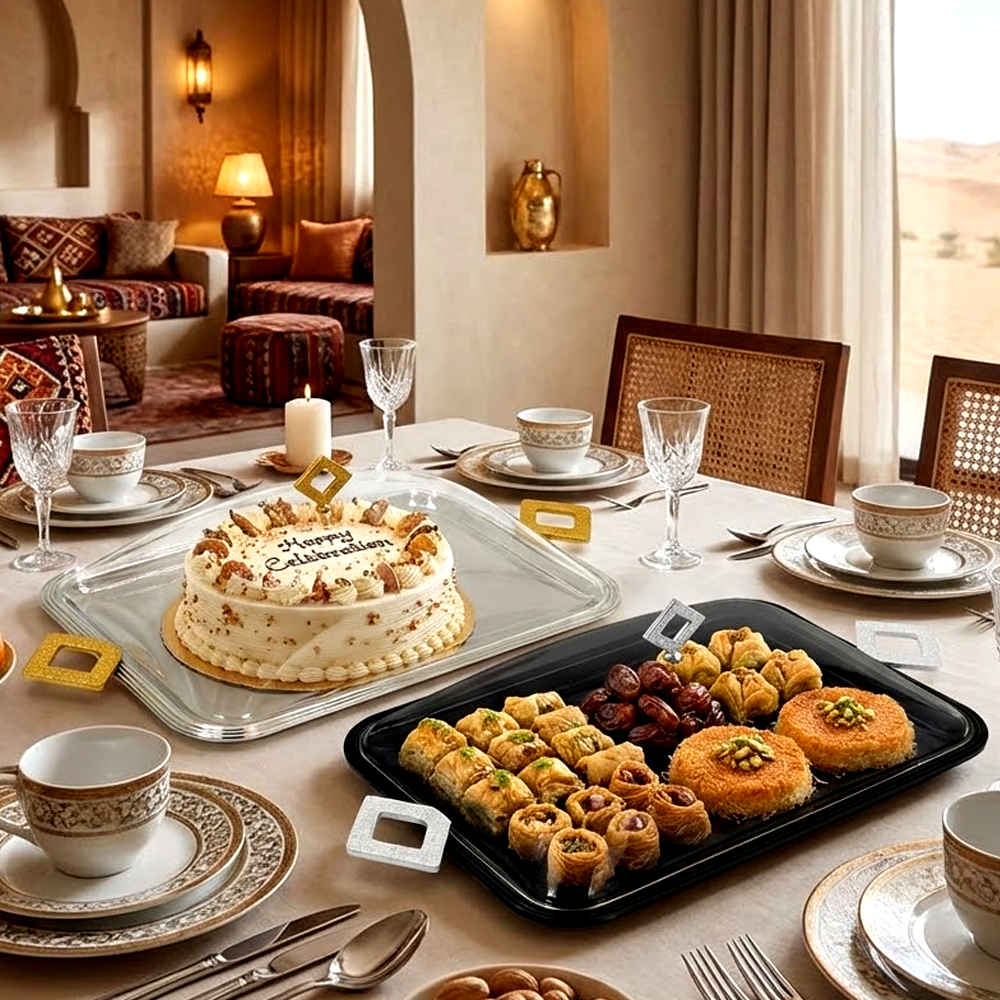 مثالي لتقديم الكيك، الحلويات، المعجنات، التمر، والمقبلات في المناسبات الخاصة، العزائم، وشهر رمضان، كما يناسب الاستخدام اليومي أو الضيافة الفاخرة.