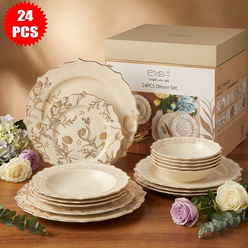 ✨ طقم أطباق المائدة الفاخر 24 قطعة – ديفا ليدي | جودة راقية وتصميم ملكي