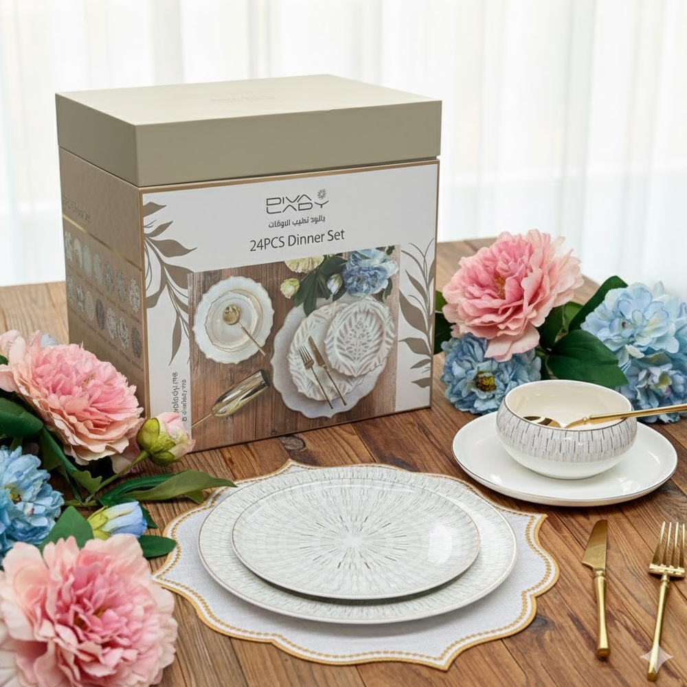 ✨ طقم أطباق المائدة الفاخر 24 قطعة – ديفا ليدي | جودة راقية وتصميم ملكي