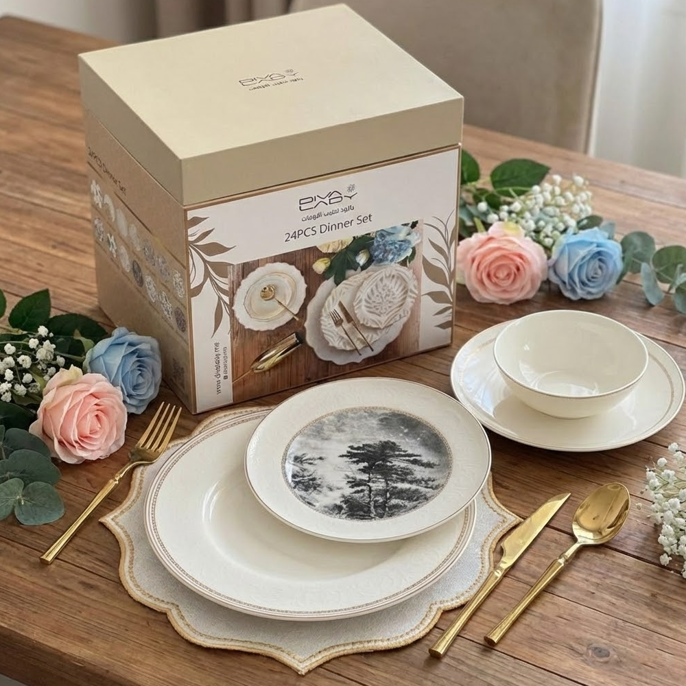 ✨ طقم أطباق المائدة الفاخر 24 قطعة – ديفا ليدي | جودة راقية وتصميم ملكي