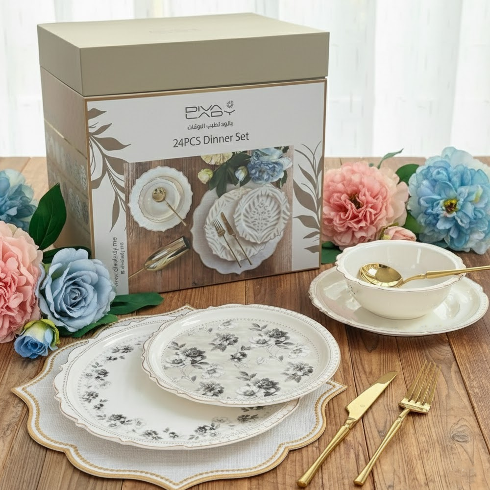 ✨ طقم أطباق المائدة الفاخر 24 قطعة – ديفا ليدي | جودة راقية وتصميم ملكي