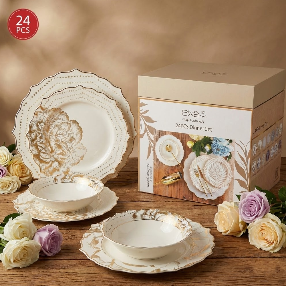 ✨ طقم أطباق المائدة الفاخر 24 قطعة – ديفا ليدي | جودة راقية وتصميم ملكي