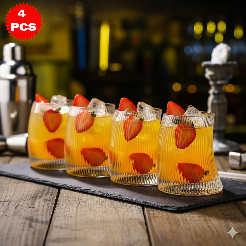 طقم أكواب زجاجية بنقوش طولية 4 قطع (325 مل)