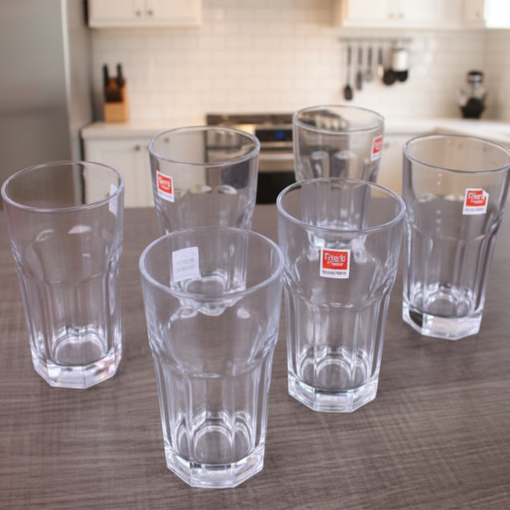6 أكواب زجاجية شفافة (415 مل لكل كوب)
