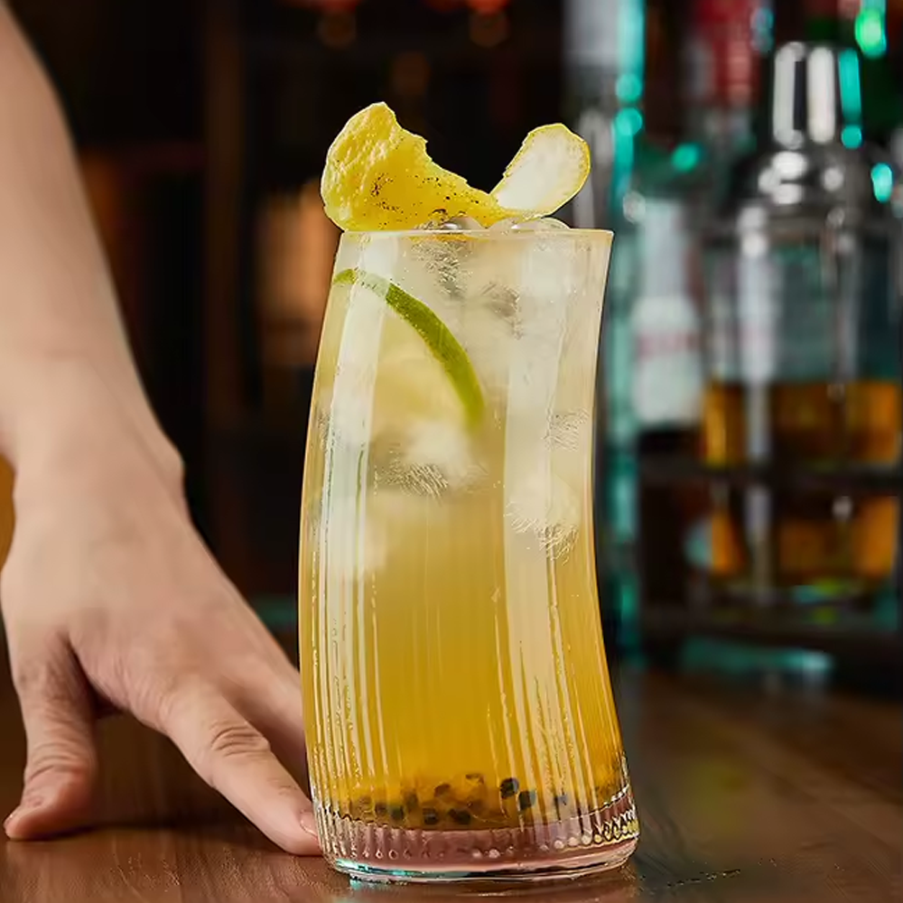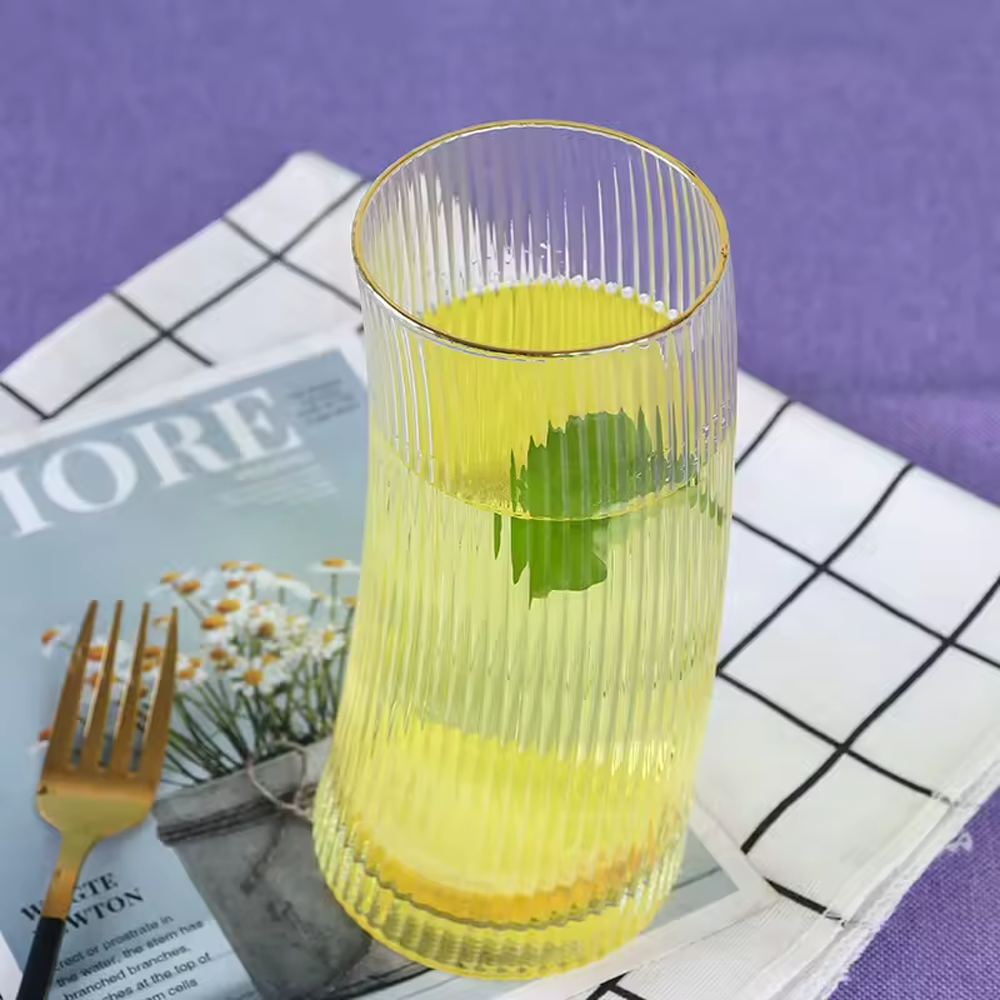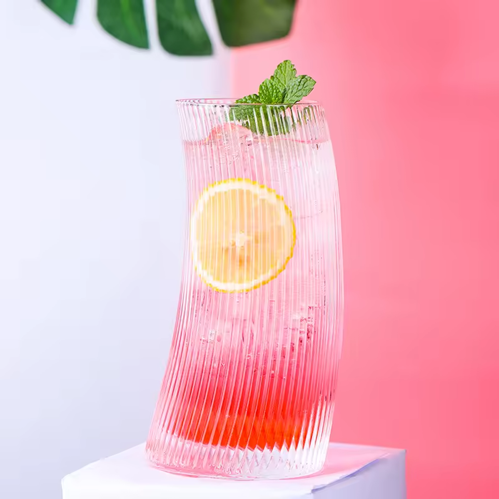 يتميز التصميم المنحني الفريد مع النقوش الطولية الأنيقة التي تضيف لمسة فخمة، مما يجعله مثاليًا لتقديم العصائر، المشروبات الغازية، أو المياه بطريقة راقية.