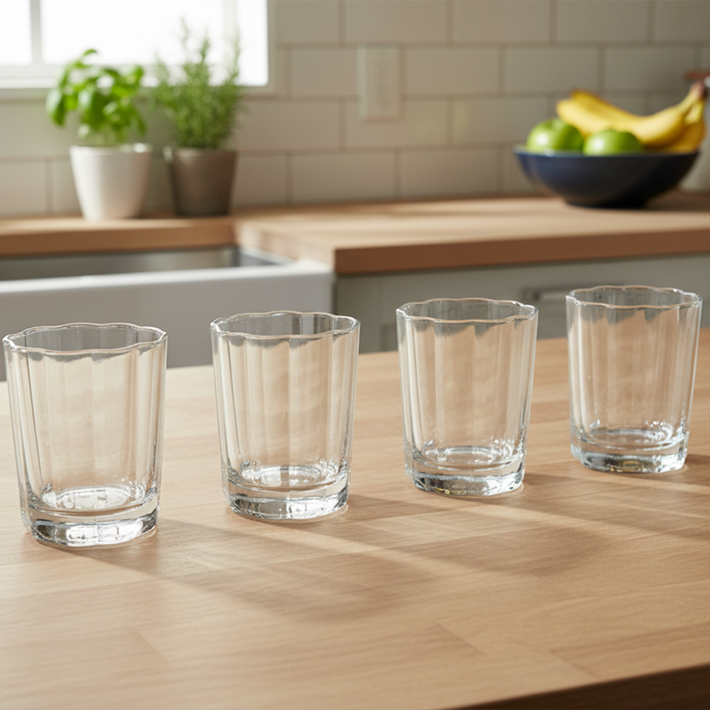 أضف لمسة من الأناقة الكلاسيكية إلى طاولتك مع طقم الأكواب الزجاجية المكون من 4 قطع، بسعة 245 مل لكل كوب.