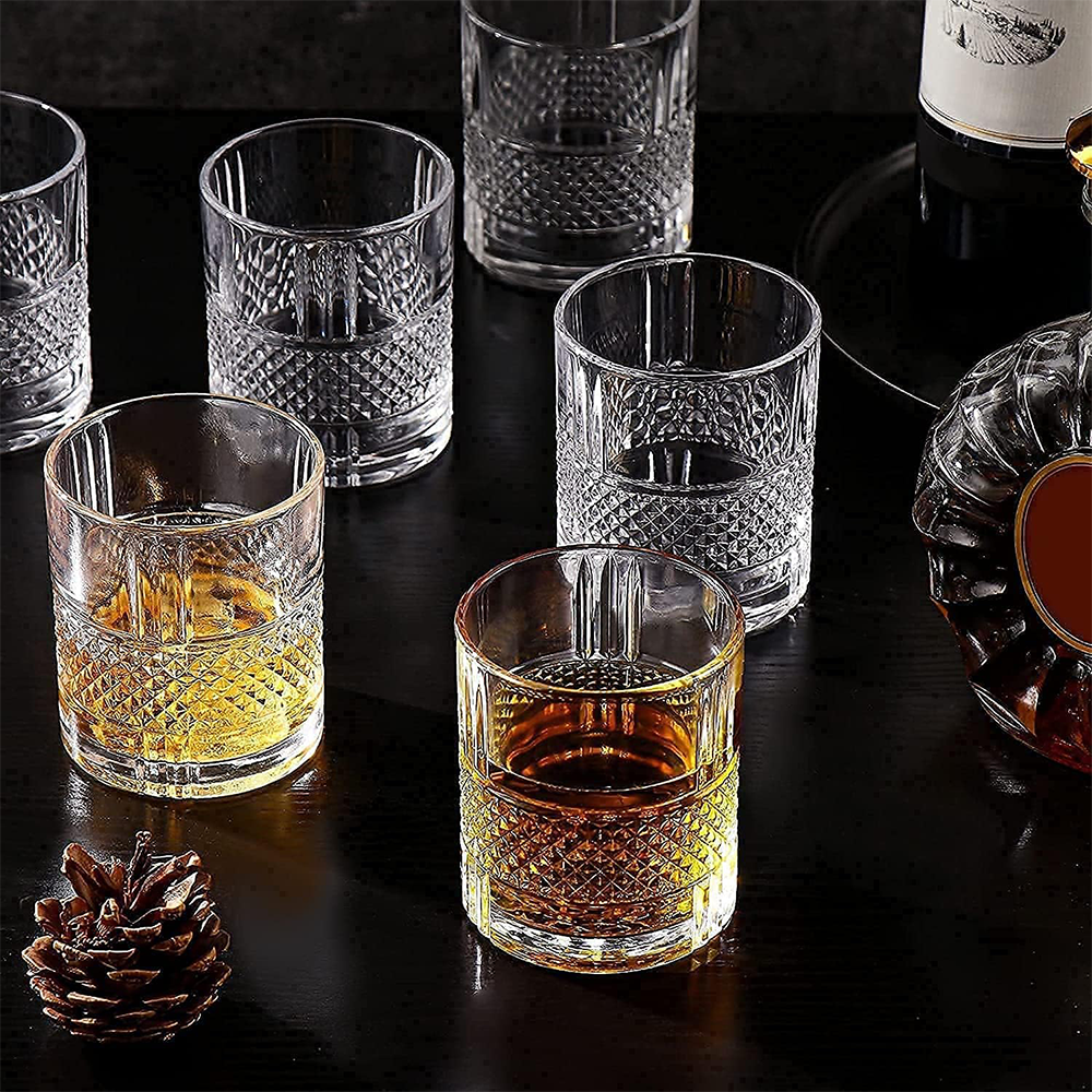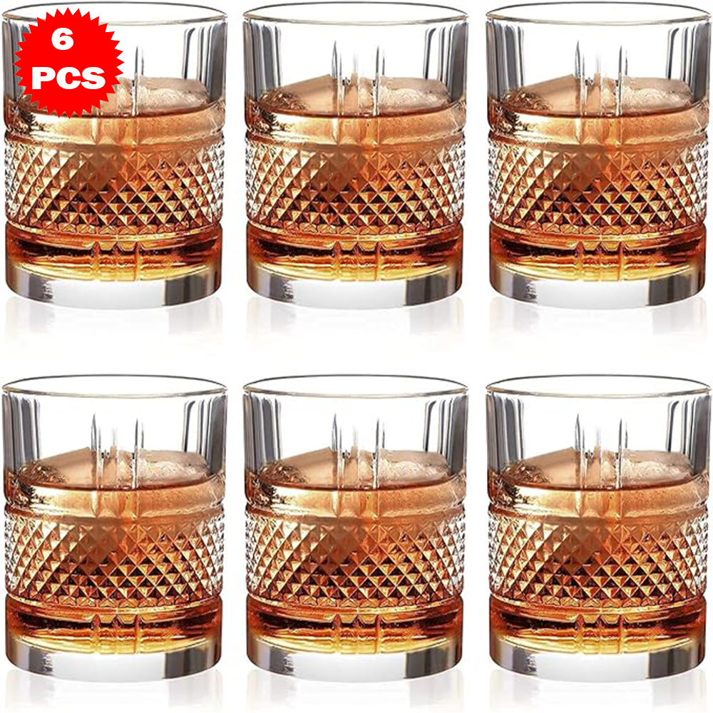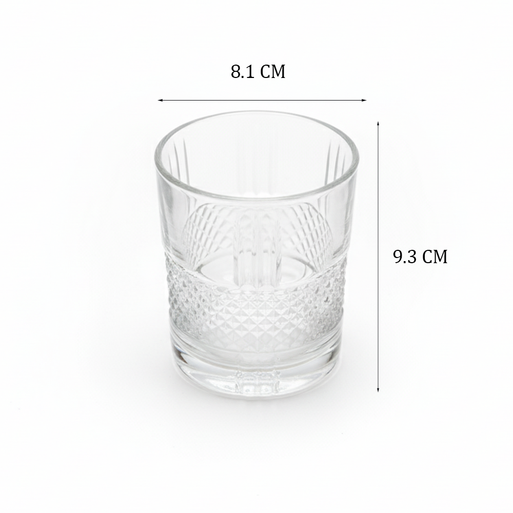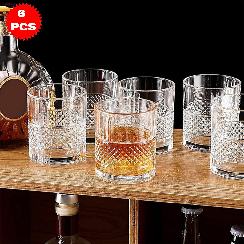 أضف لمسة من الأناقة الكلاسيكية إلى مائدتك مع طقم الأكواب الزجاجية المنقوشة الفاخرة المكون من 6 قطع.
