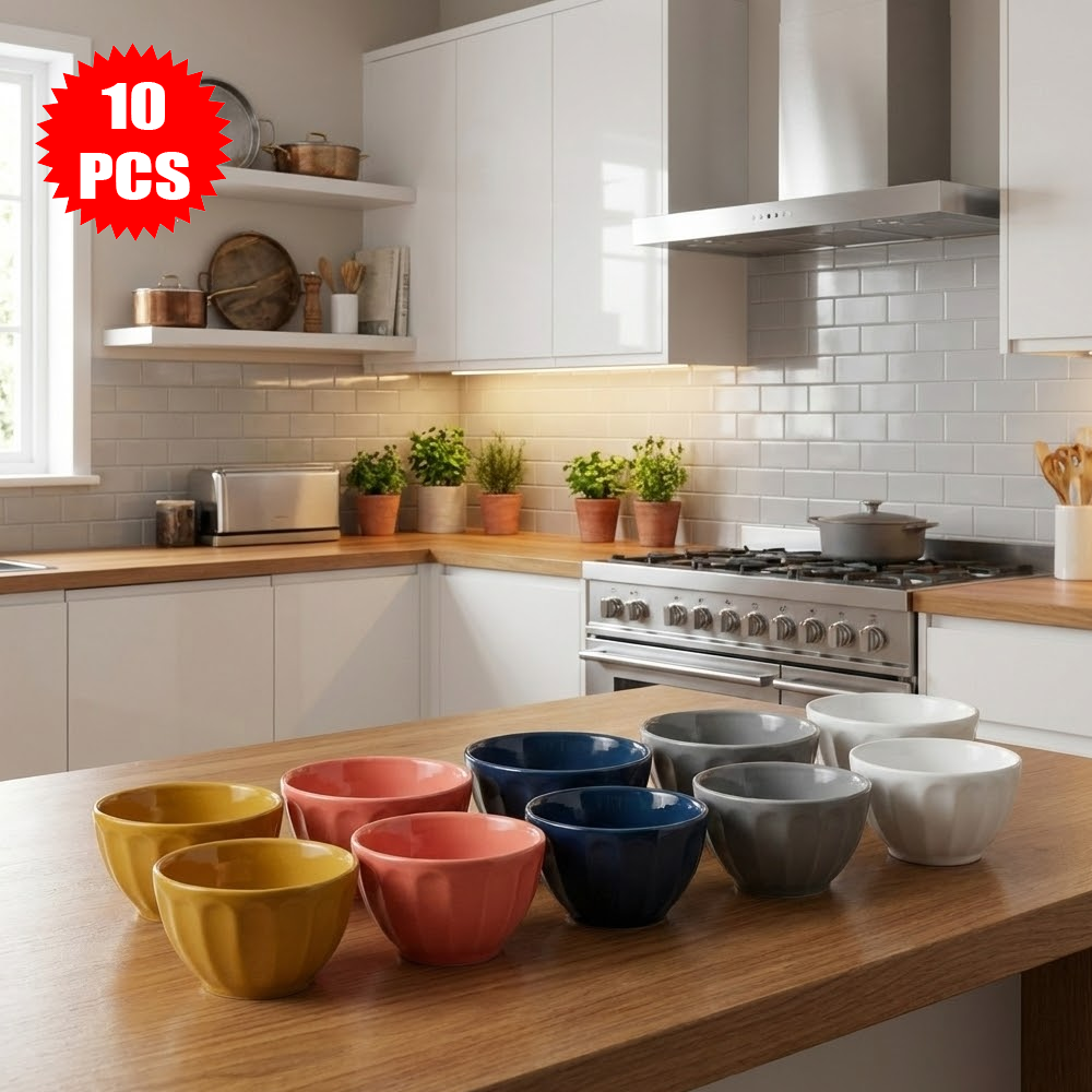 طقم أوعية بورسلان متعددة الاستخدام – 10 قطع بألوان أنيقة