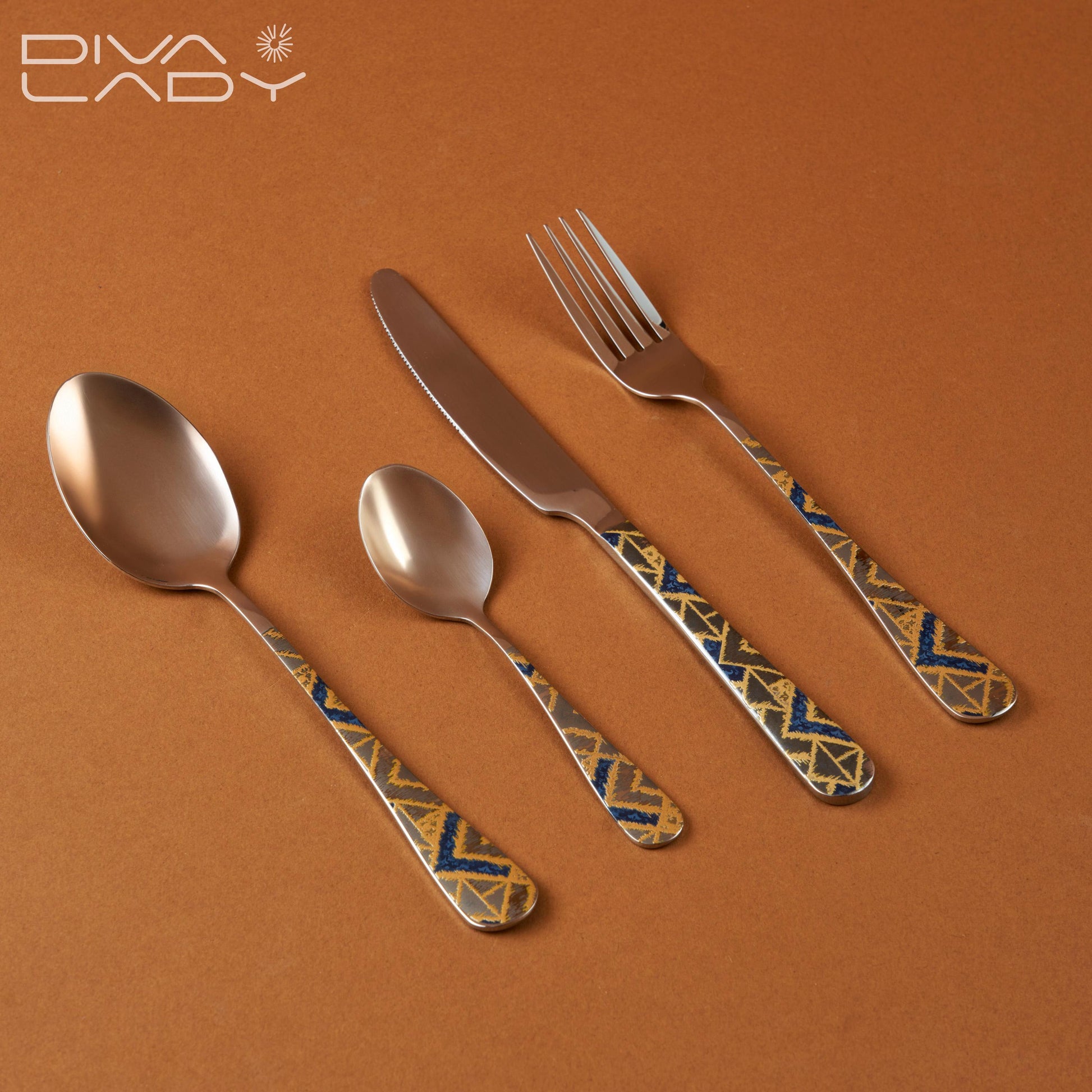جهّزي طاولة سفرتكِ بكل أناقة باعتماد طقم أدوات المائدة الفاخر هذا يضم 24 قطعة بما في ذلك ملاعق طاولة، ملاعق شاي، شوك وسكاكين