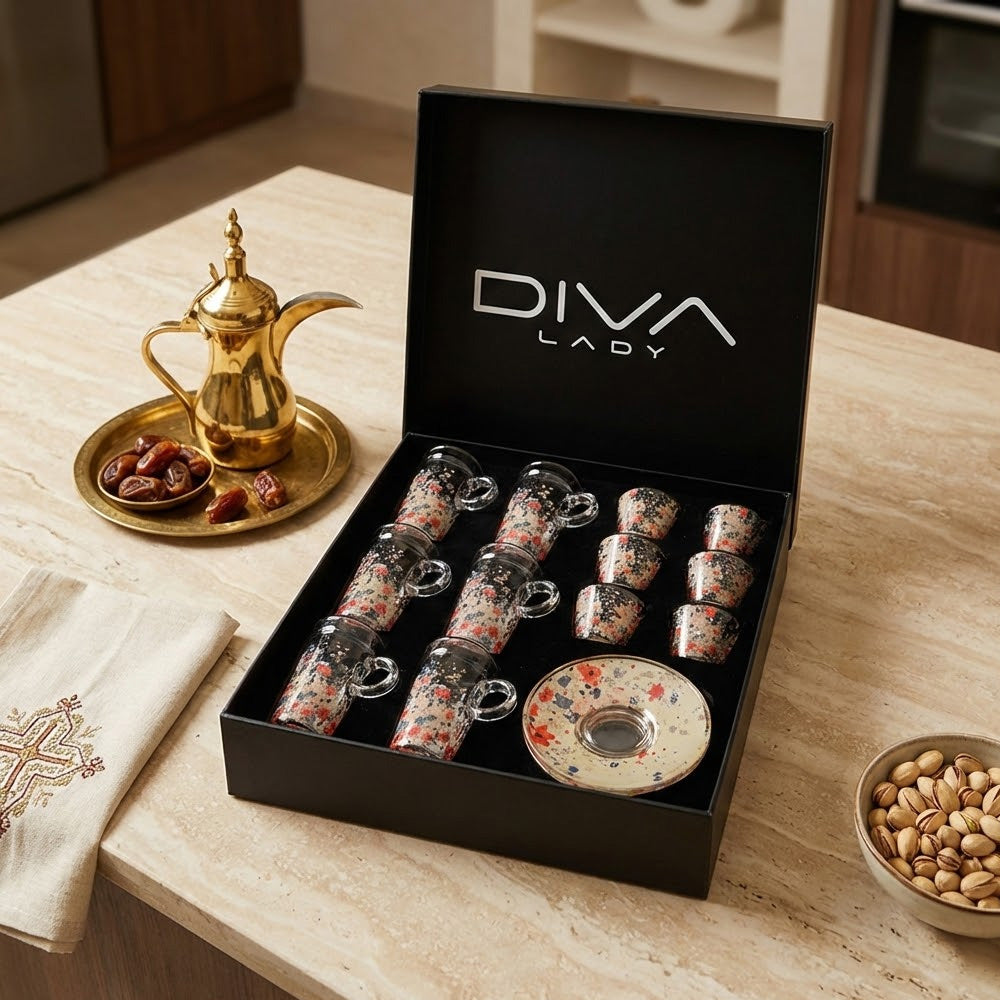 طقم استكانة وفنجان 18 قطعة
