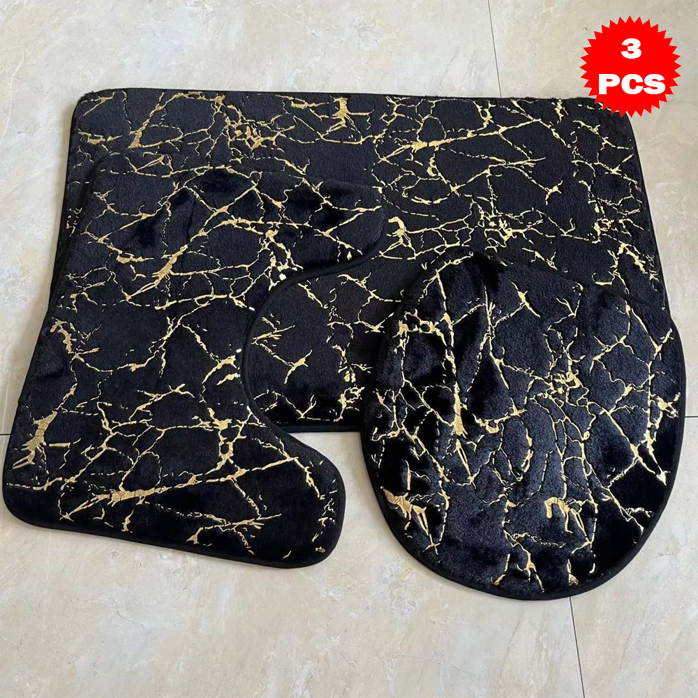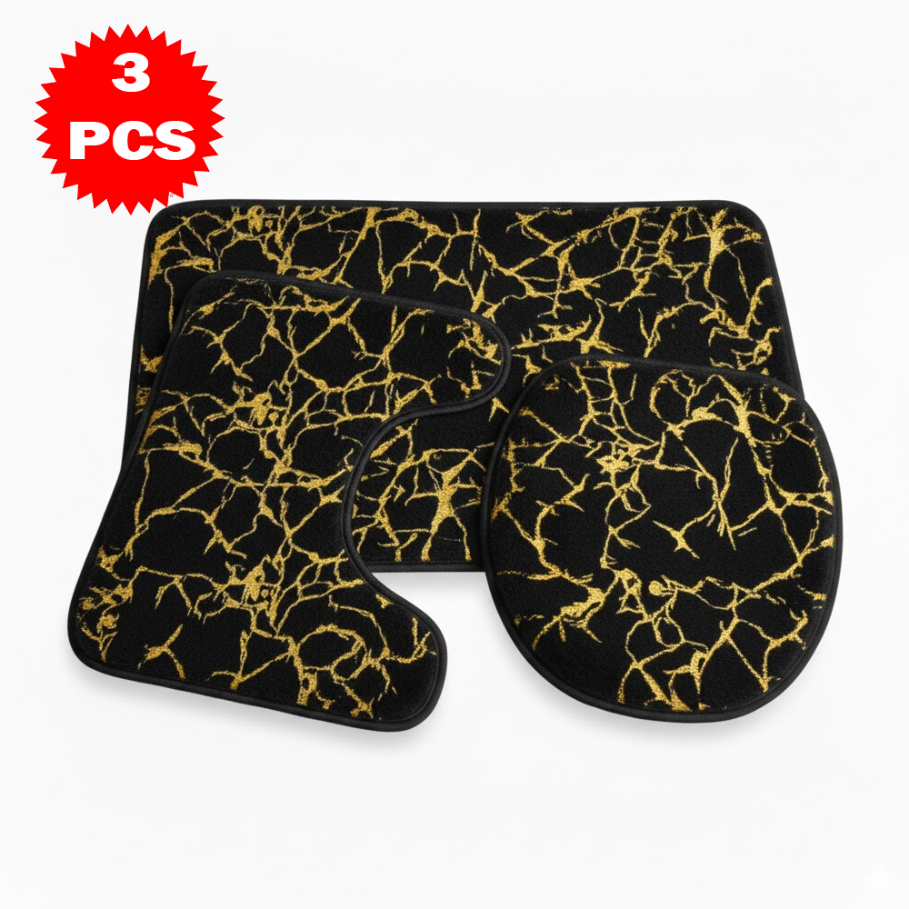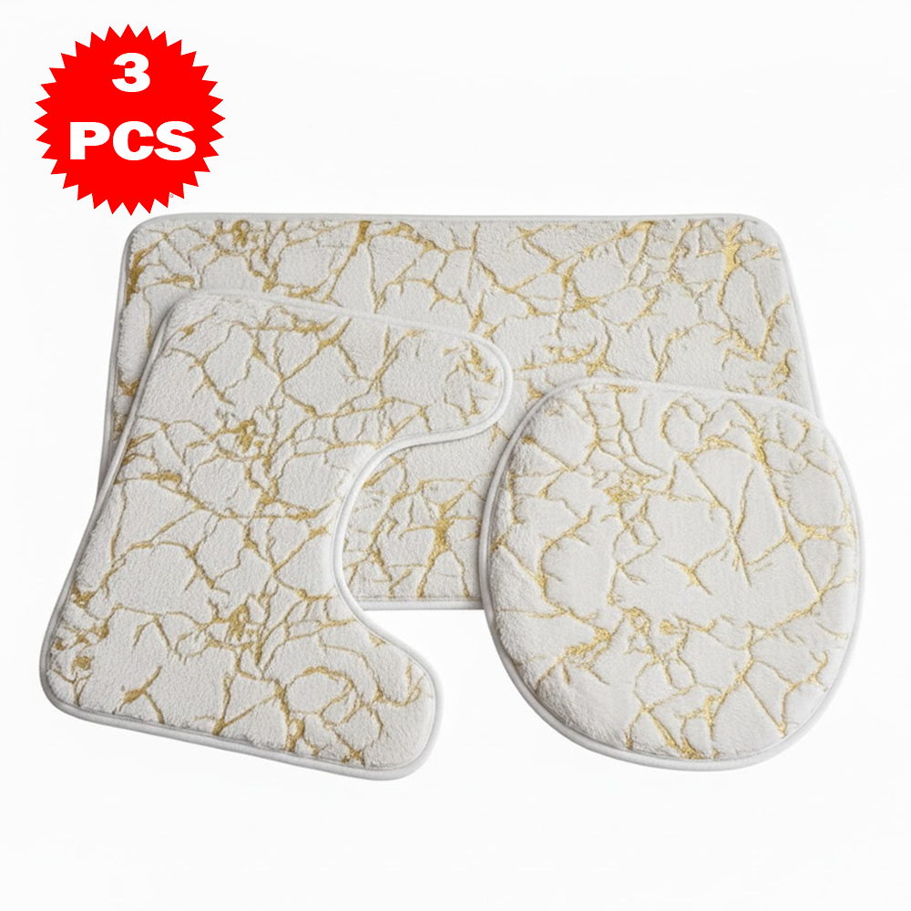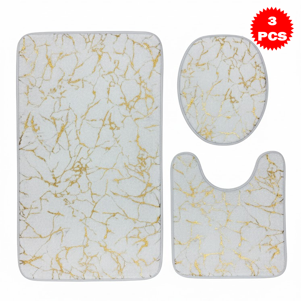 طقم سجاد حمّام فاخر 3 قطع بنقشة الرخام – مضاد للانزلاق | ناعم، ممتص للماء، وأنيق بلمسة فاخرة