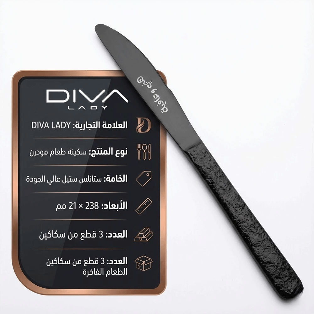 أضيفي لمسة فخامة استثنائية إلى مائدتك مع طقم سكاكين الطعام من DIVA LADY، المصمم بأسلوب راقٍ يجمع بين القوة والأناقة. يتميز الطقم بمقبض بنقشة حجرية فاخرة تمنح السكين مظهرًا مميزًا وإحساسًا فاخرًا في اليد، ليكون الخيار المثالي للاستخدام اليومي والمناسبات الخاصة.