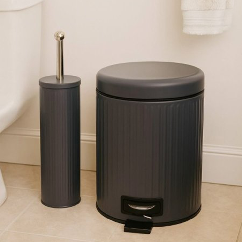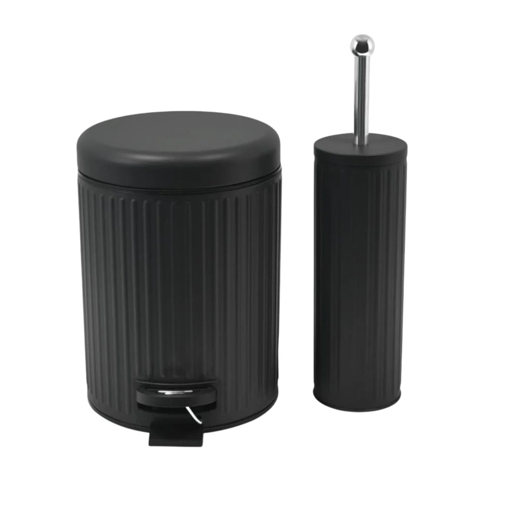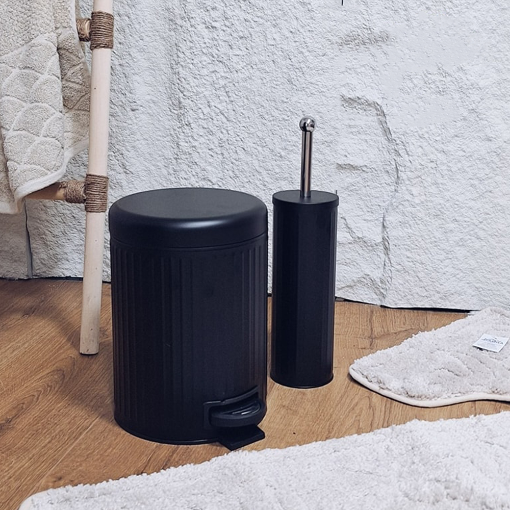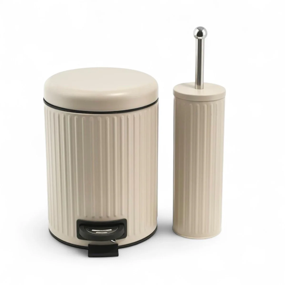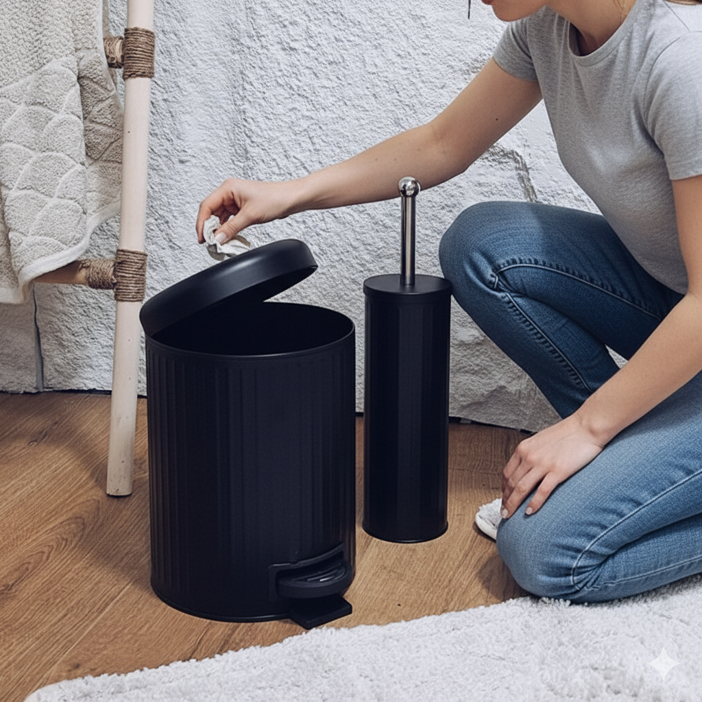أضف لمسة من الأناقة إلى حمامك مع طقم سلة المهملات وممسحة المرحاض بتصميم عصري وعملي.